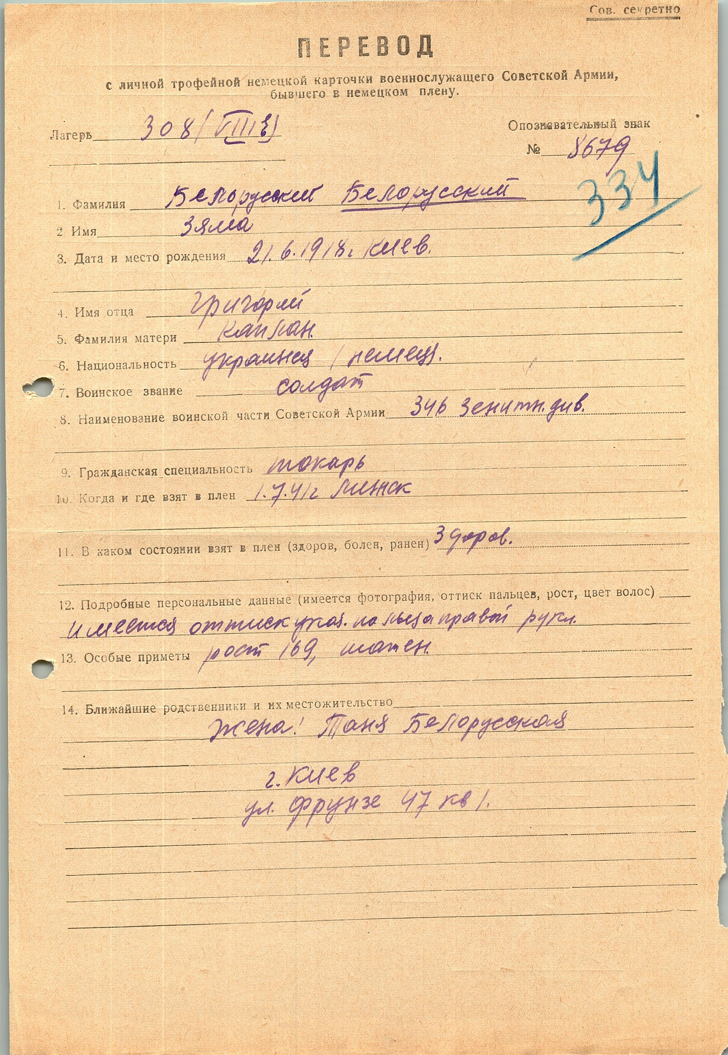 Военнопленные, трофейные карточки. Киевская обл.