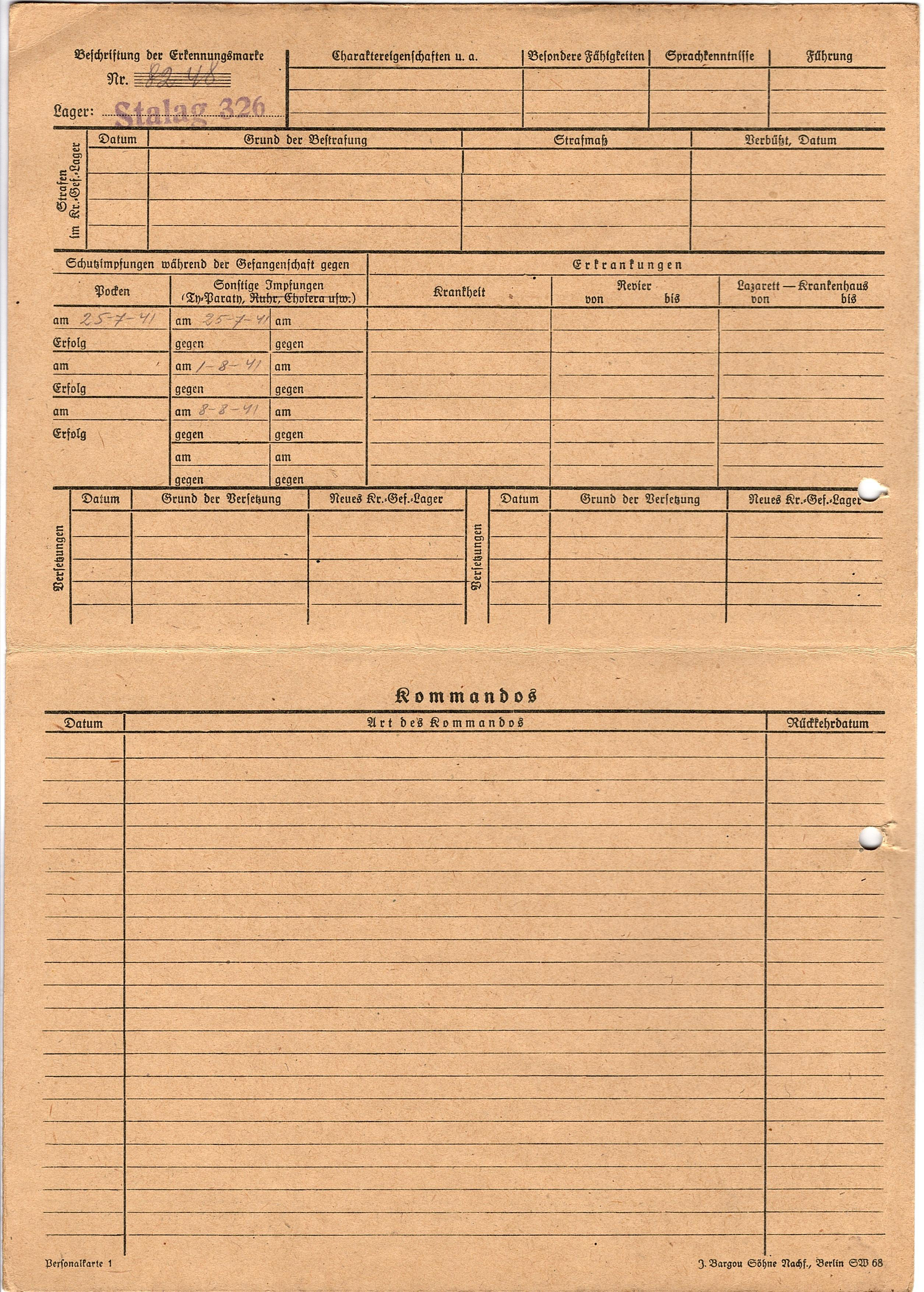 Военнопленные, трофейные карточки. Киевская обл.