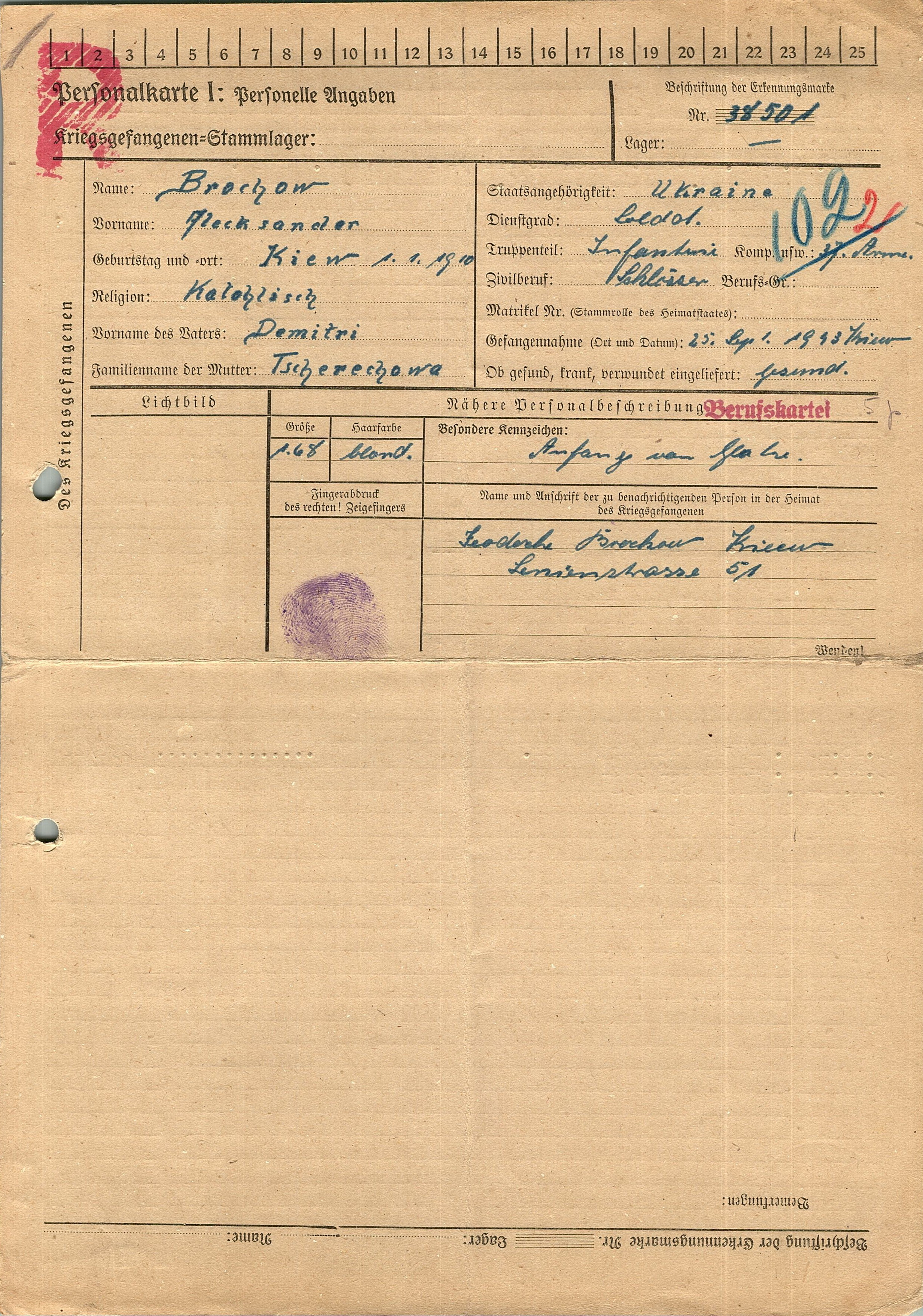 Военнопленные, трофейные карточки. Киевская обл.