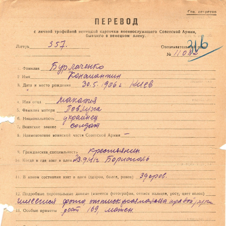 Военнопленные, трофейные карточки. Киевская обл.