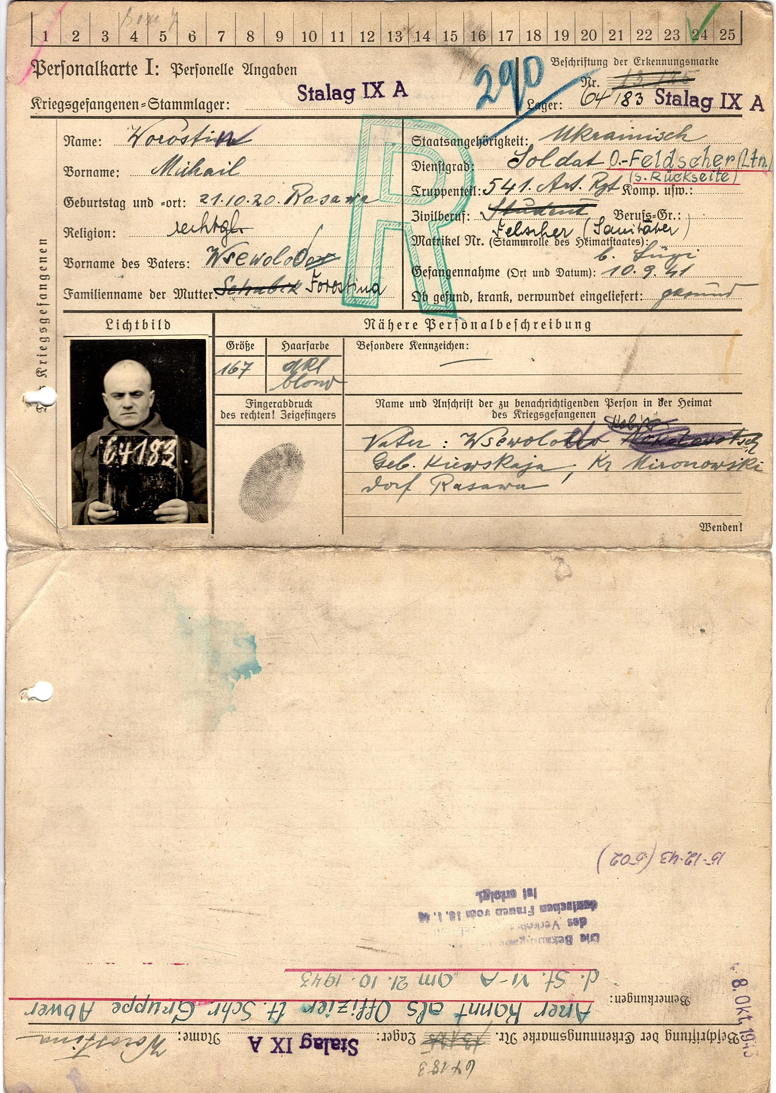 Военнопленные, трофейные карточки. Киевская обл.