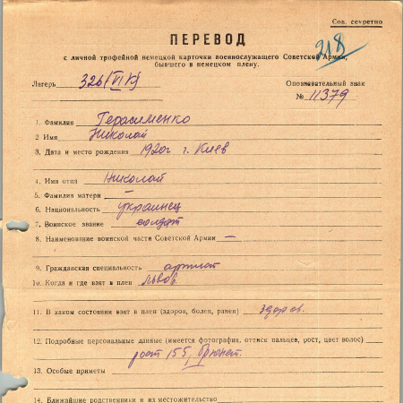 Военнопленные, трофейные карточки. Киевская обл.