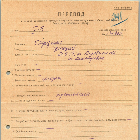 Военнопленные, трофейные карточки. Киевская обл.