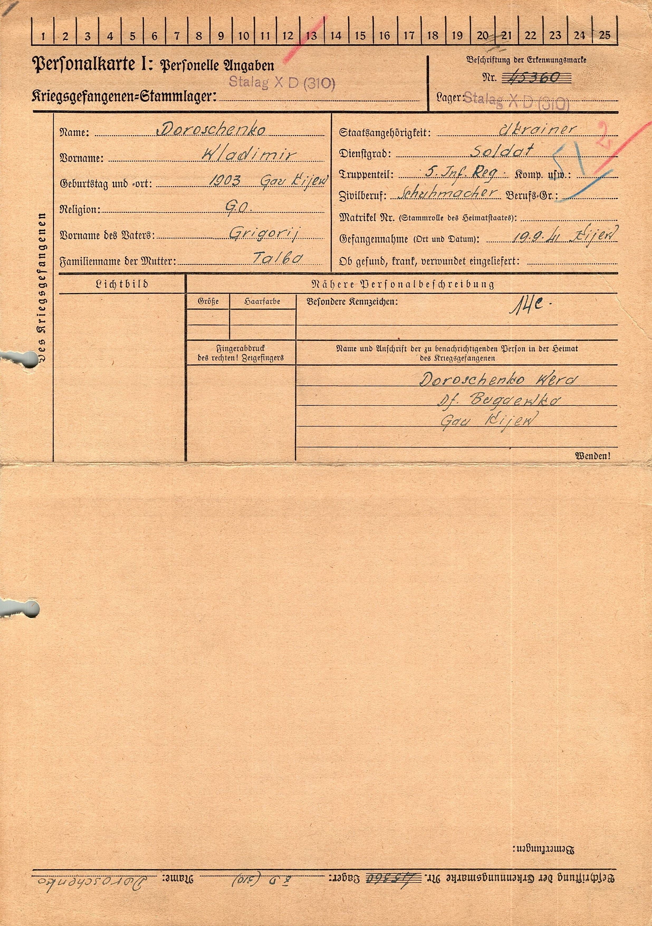 Военнопленные, трофейные карточки. Киевская обл.