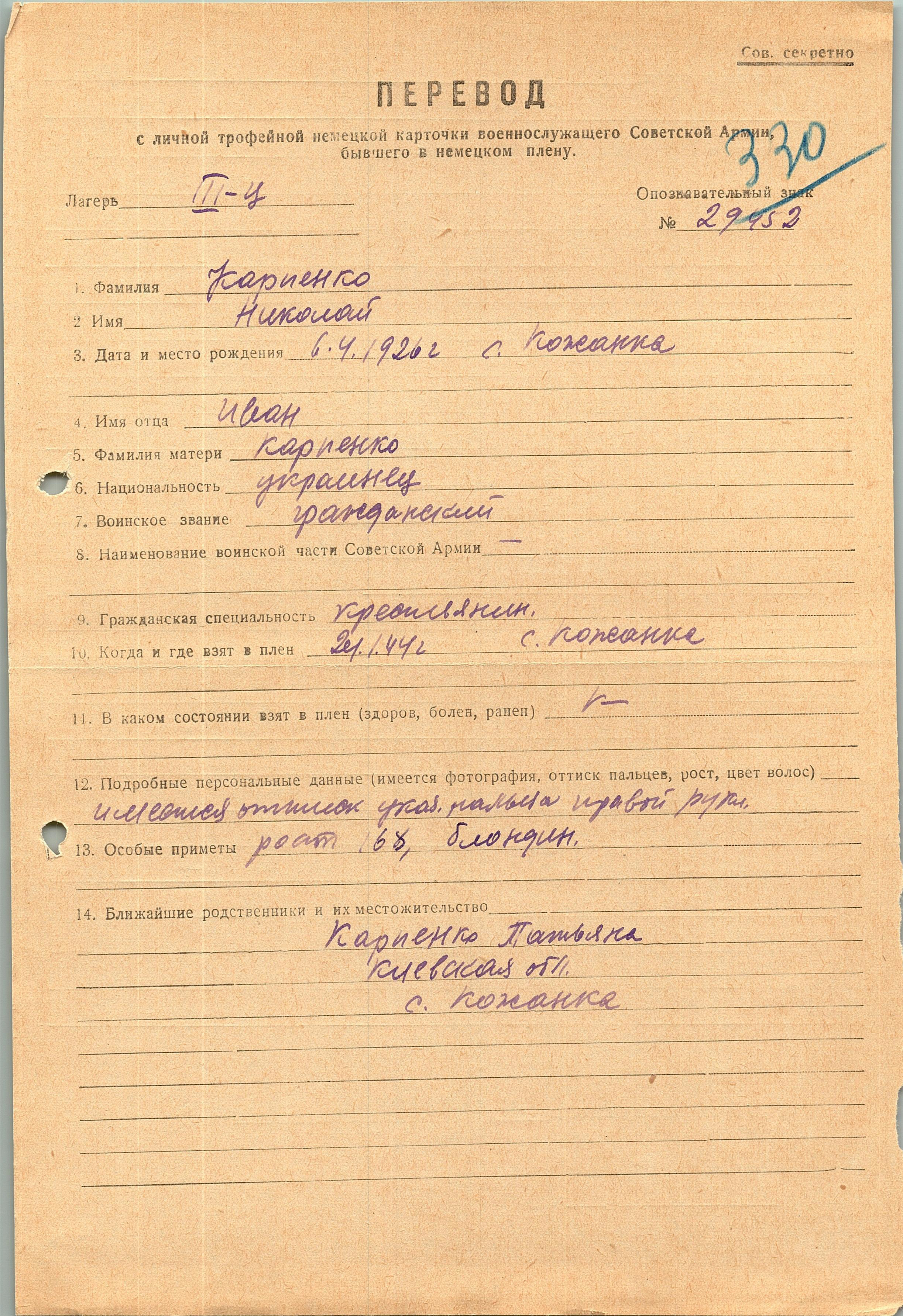 Военнопленные, трофейные карточки. Киевская обл.