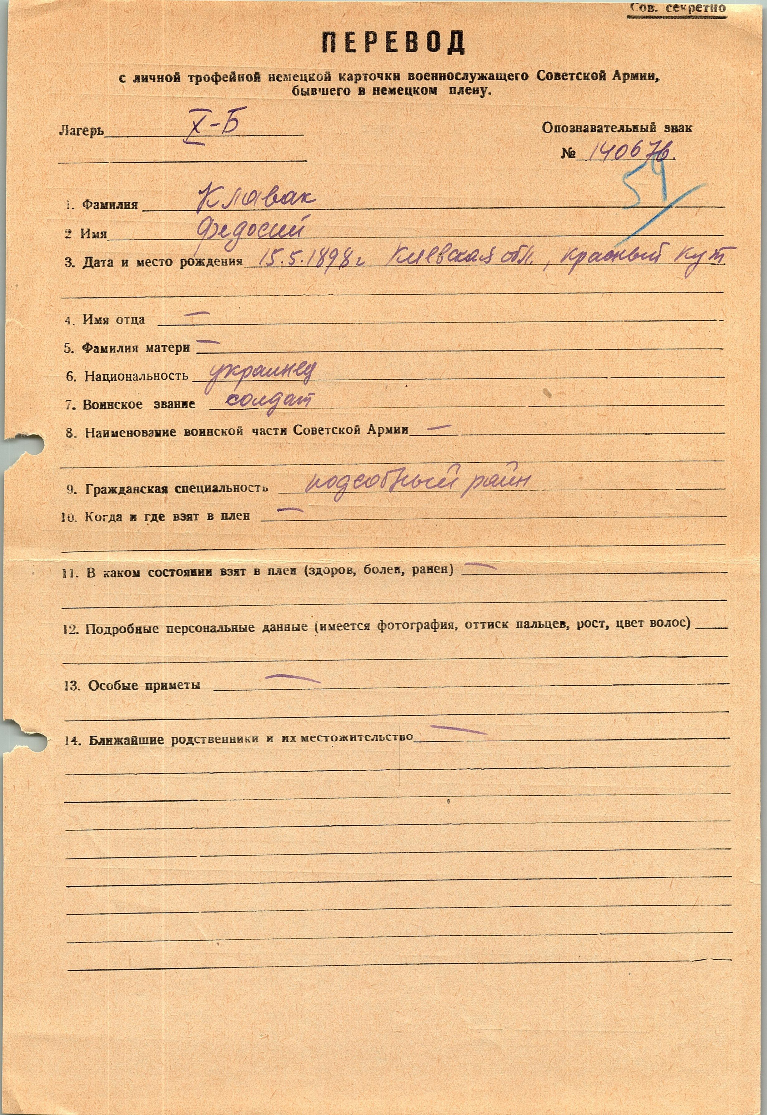 Военнопленные, трофейные карточки. Киевская обл.