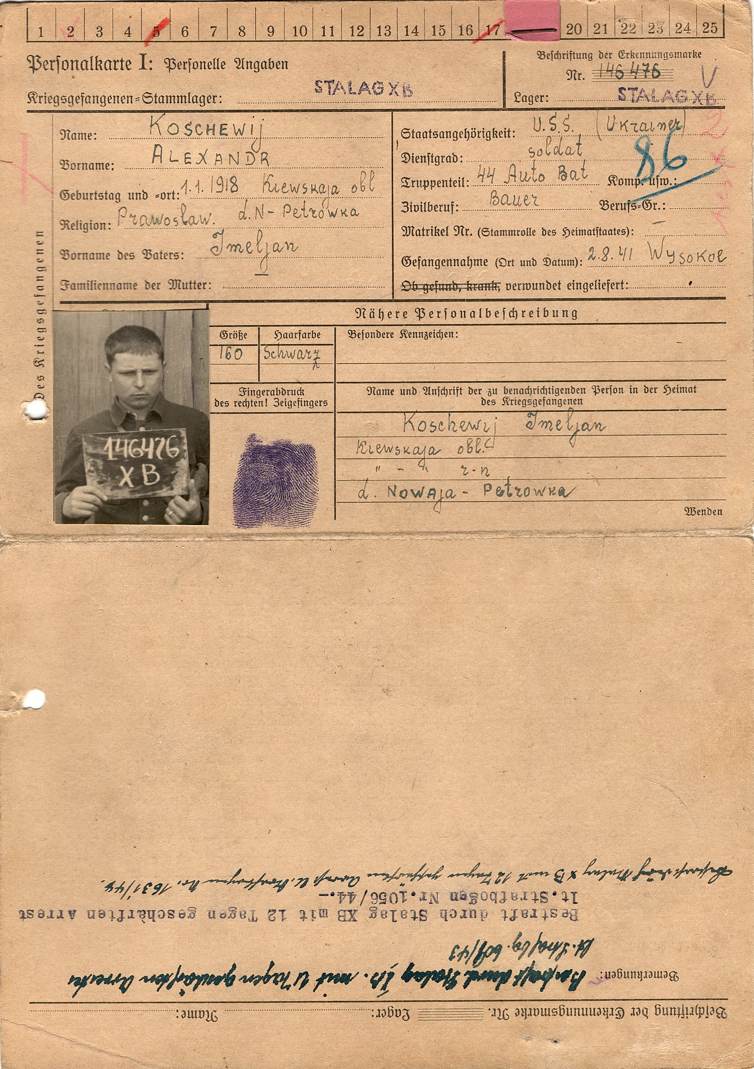 Военнопленные, трофейные карточки. Киевская обл.