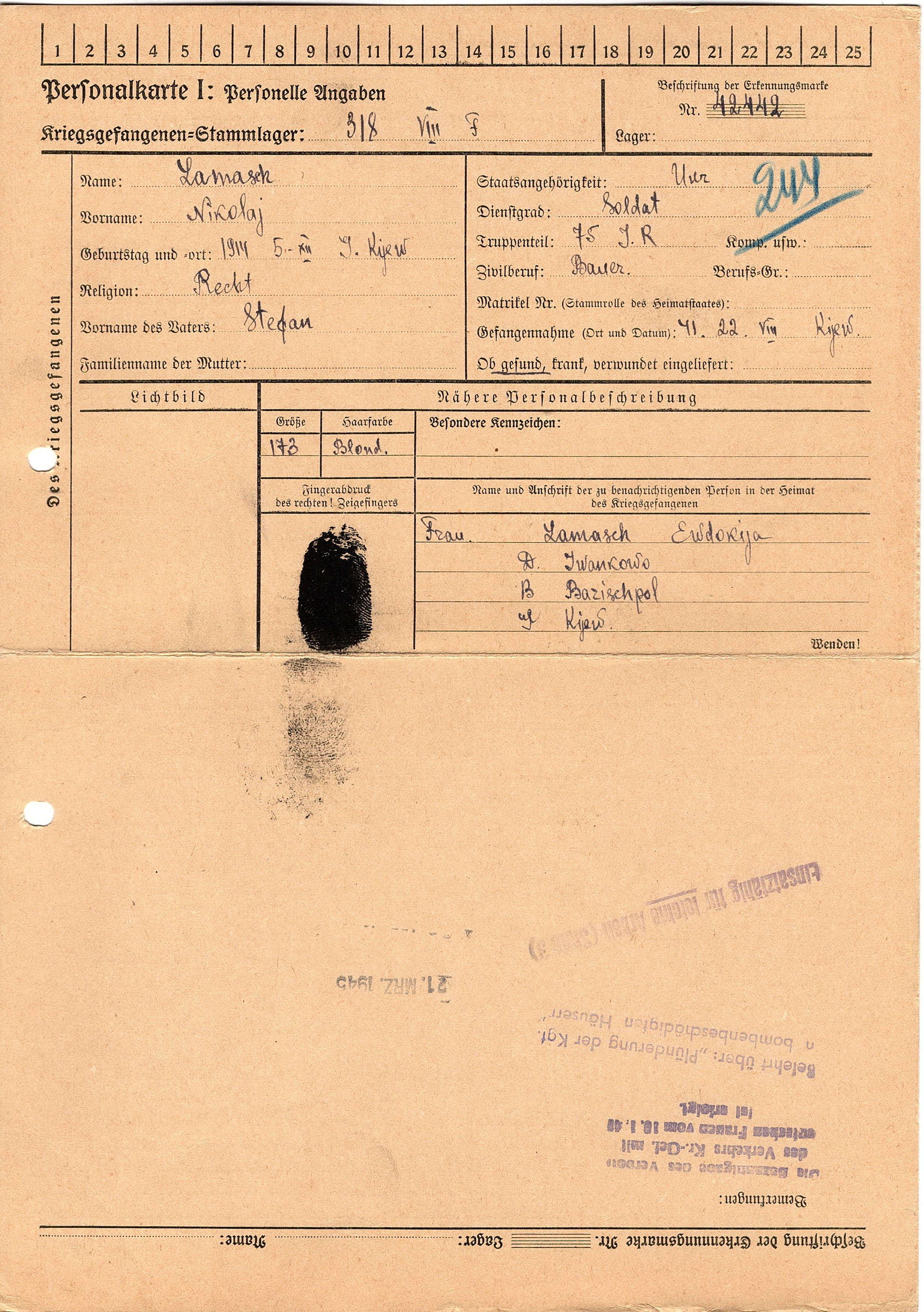 Военнопленные, трофейные карточки. Киевская обл.