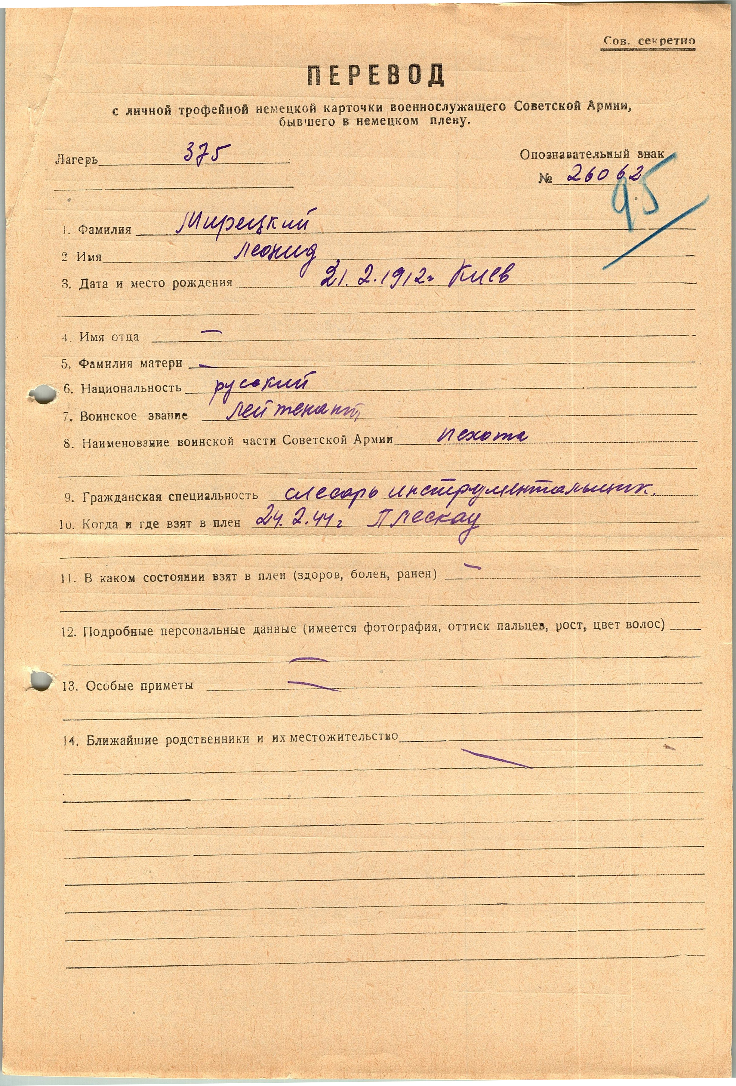 Военнопленные, трофейные карточки. Киевская обл.