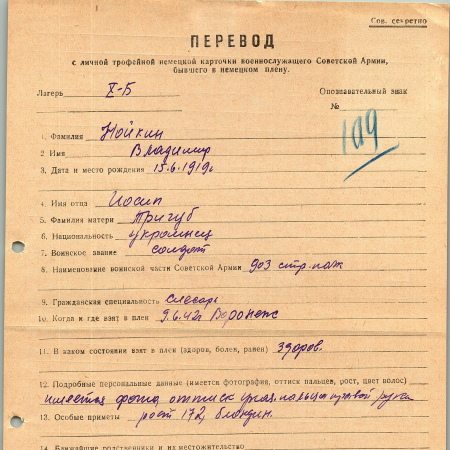 Военнопленные, трофейные карточки. Киевская обл.