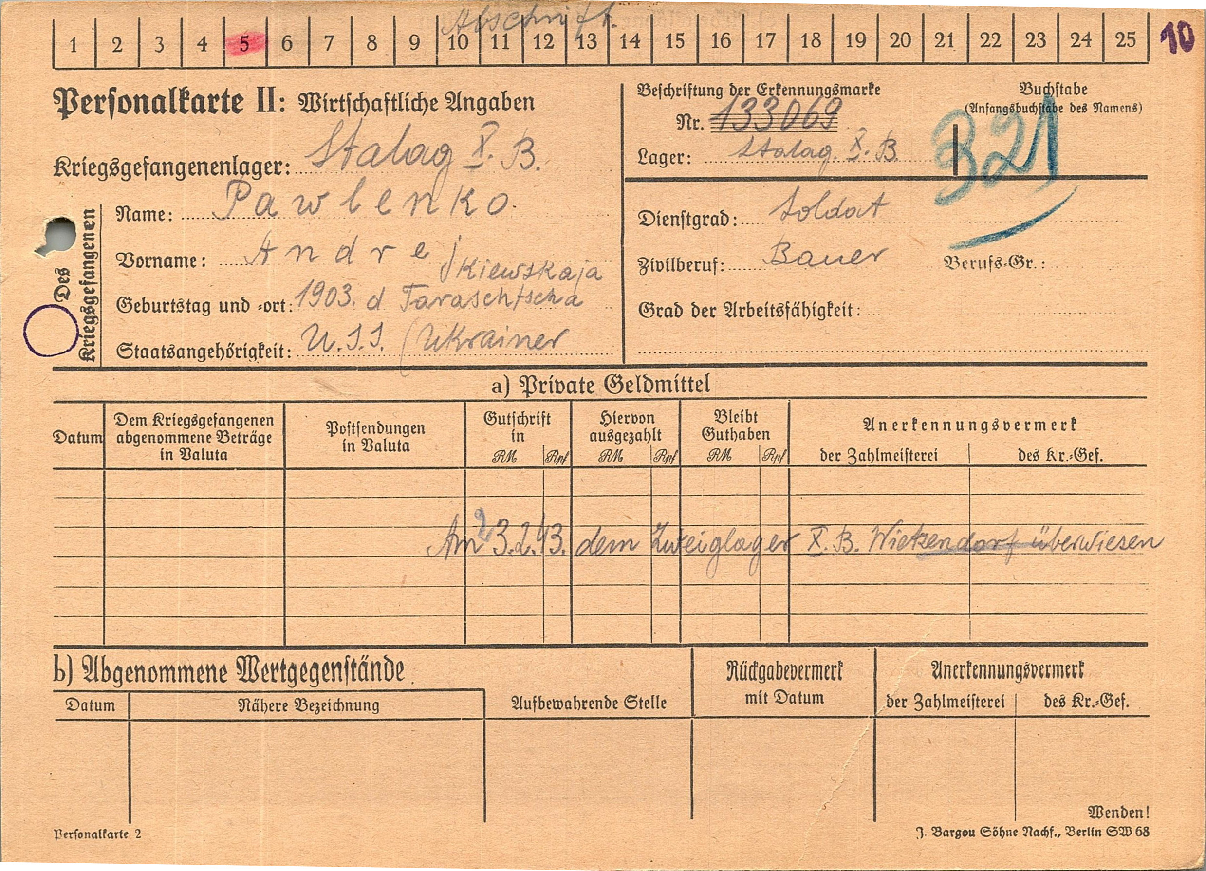 Военнопленные, трофейные карточки. Киевская обл.