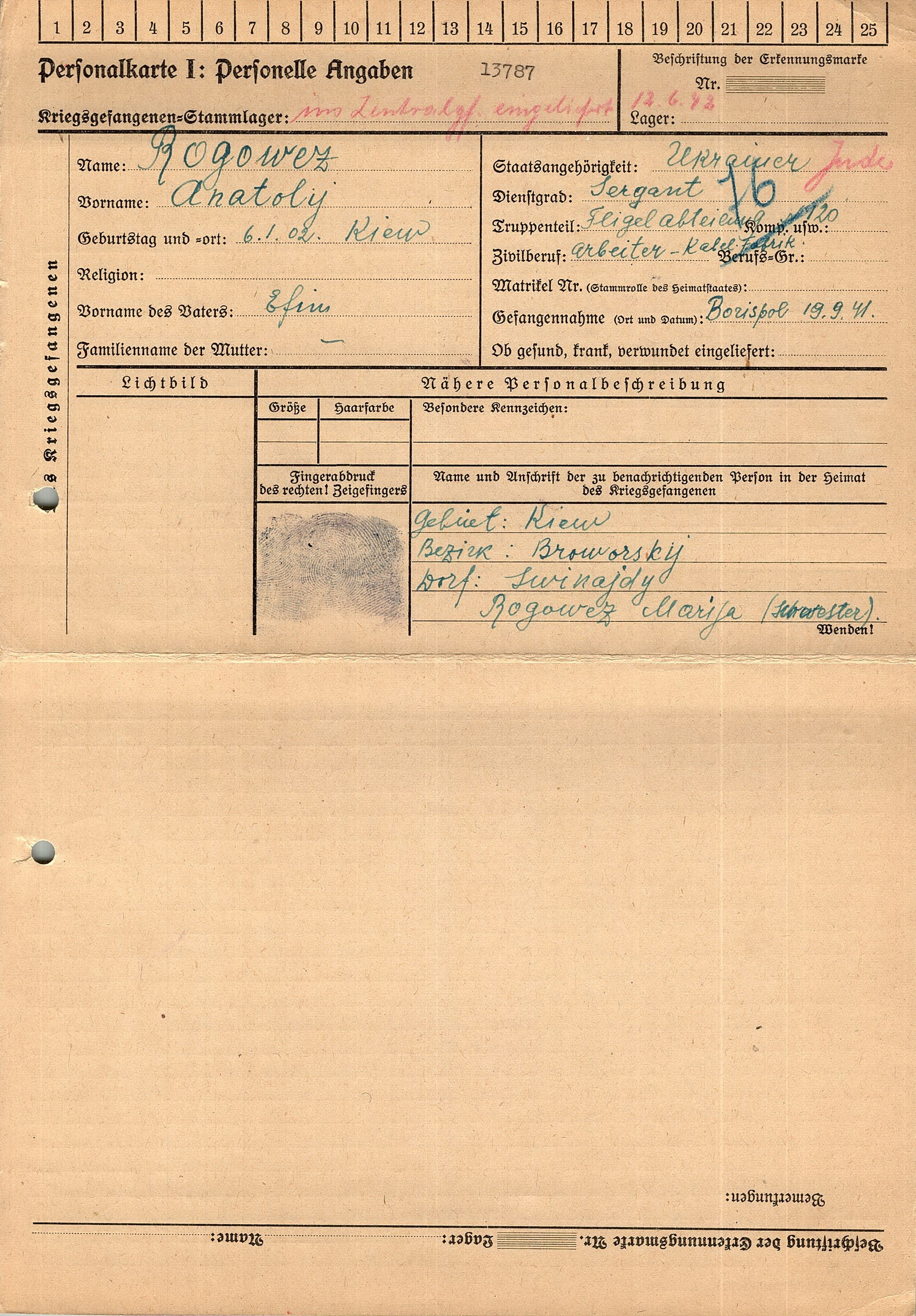 Военнопленные, трофейные карточки. Киевская обл.