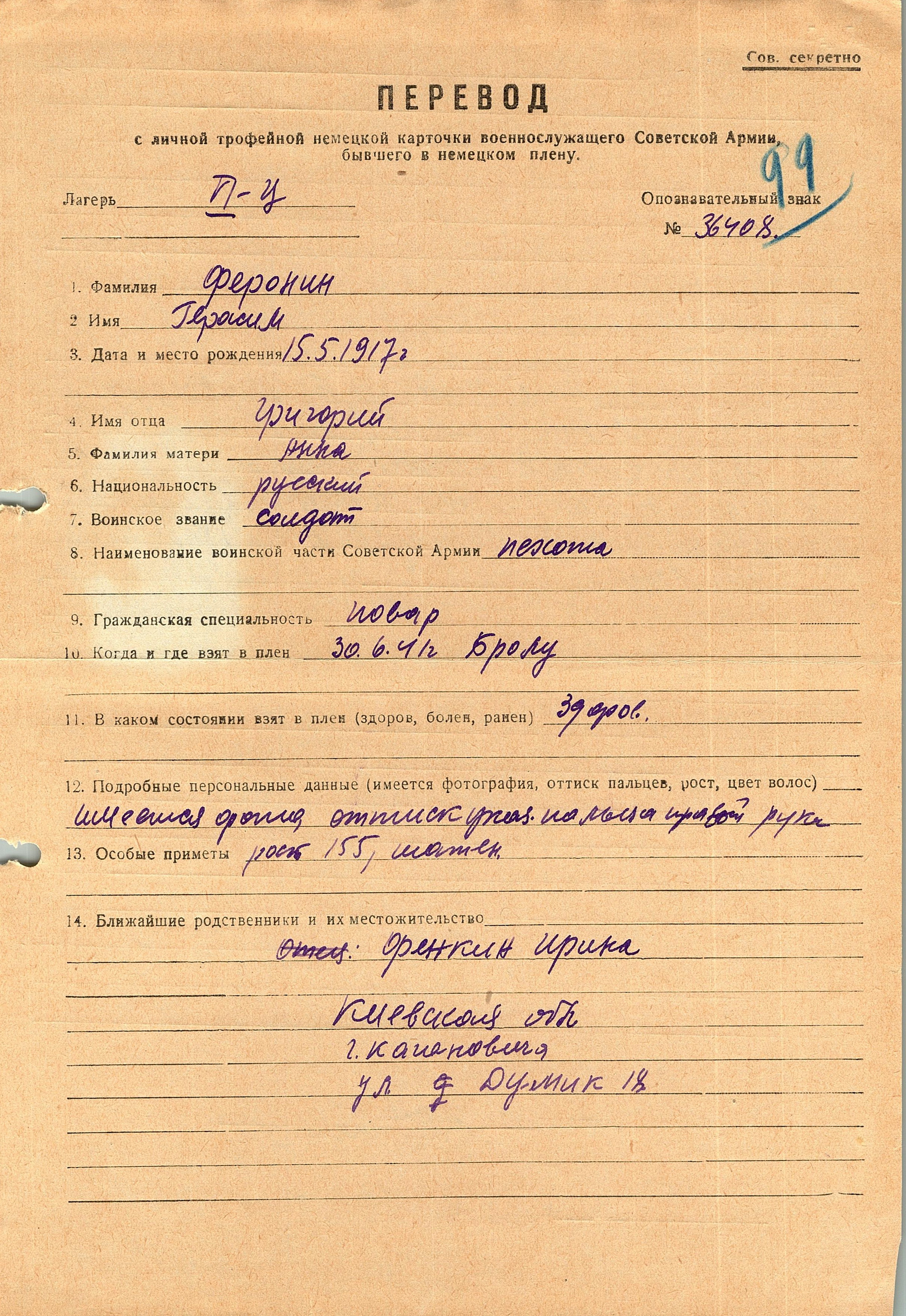 Военнопленные, трофейные карточки. Киевская обл.