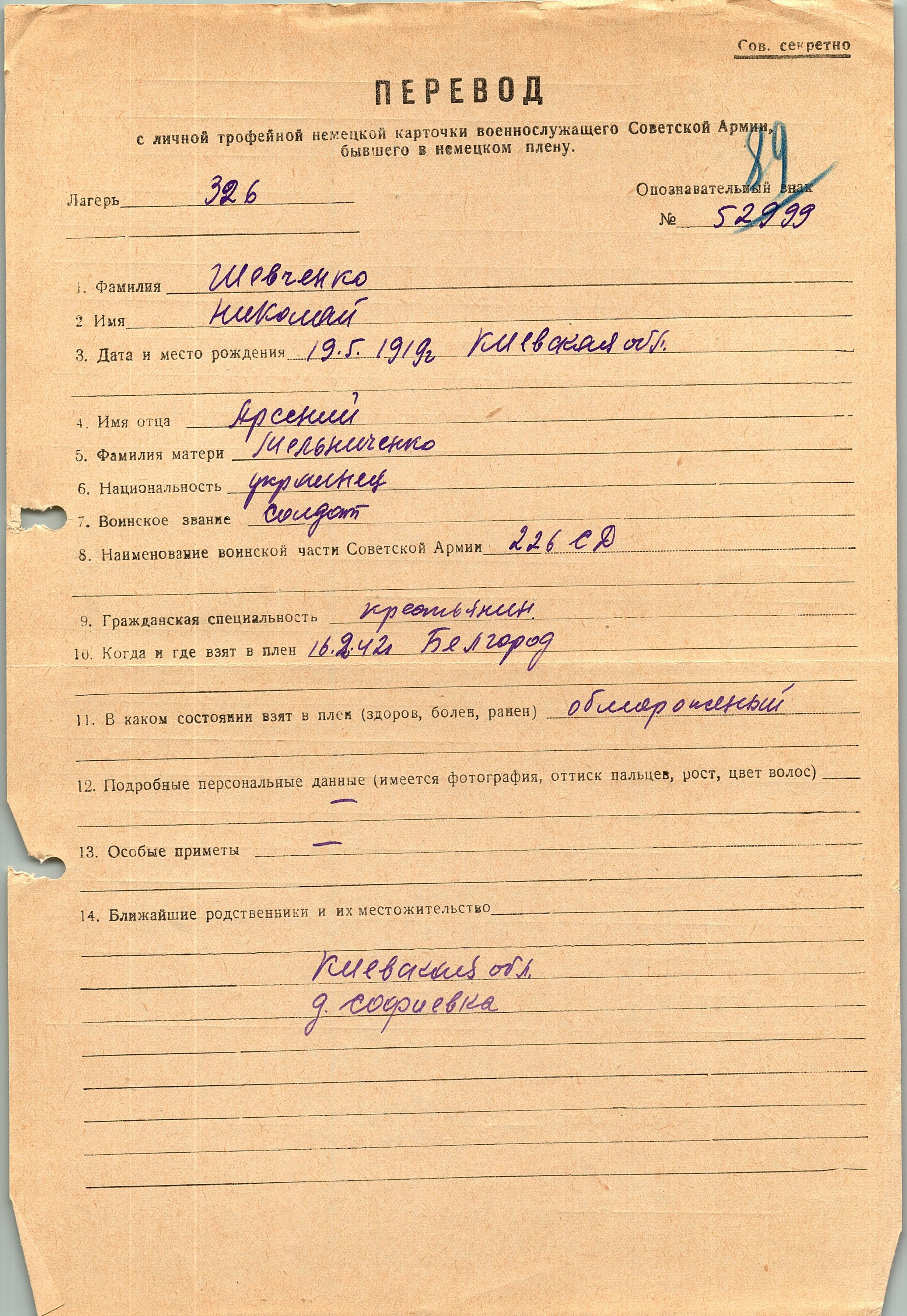 Военнопленные, трофейные карточки. Киевская обл.