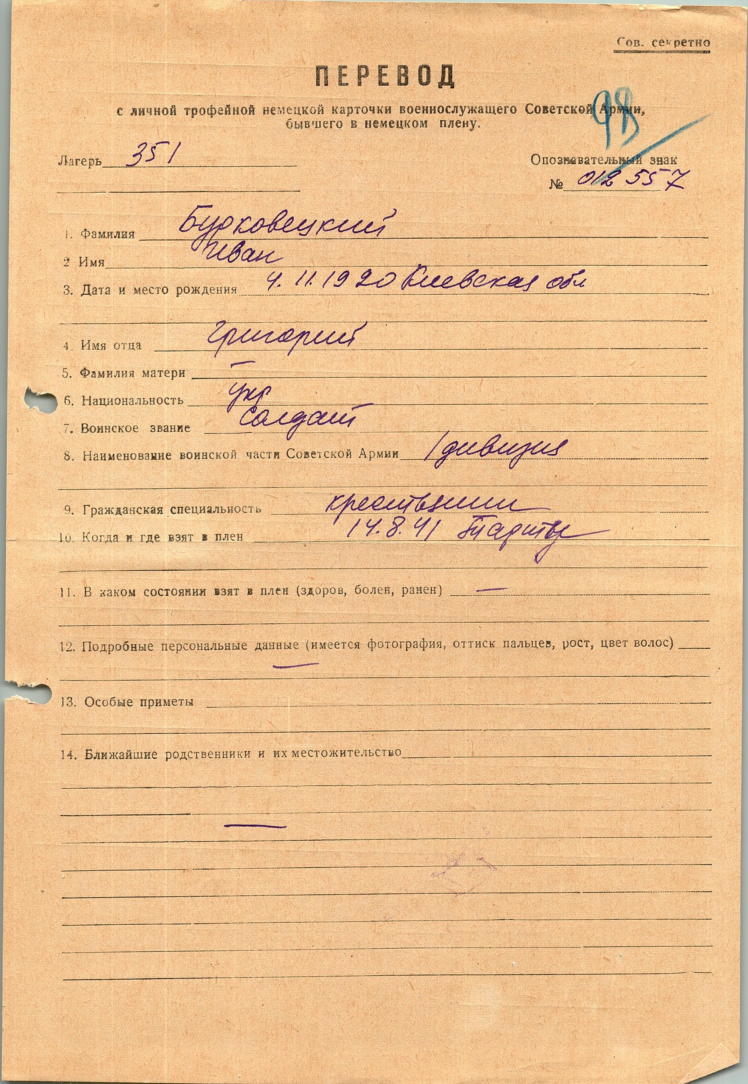 Военнопленные, трофейные карточки. Киевская обл.
