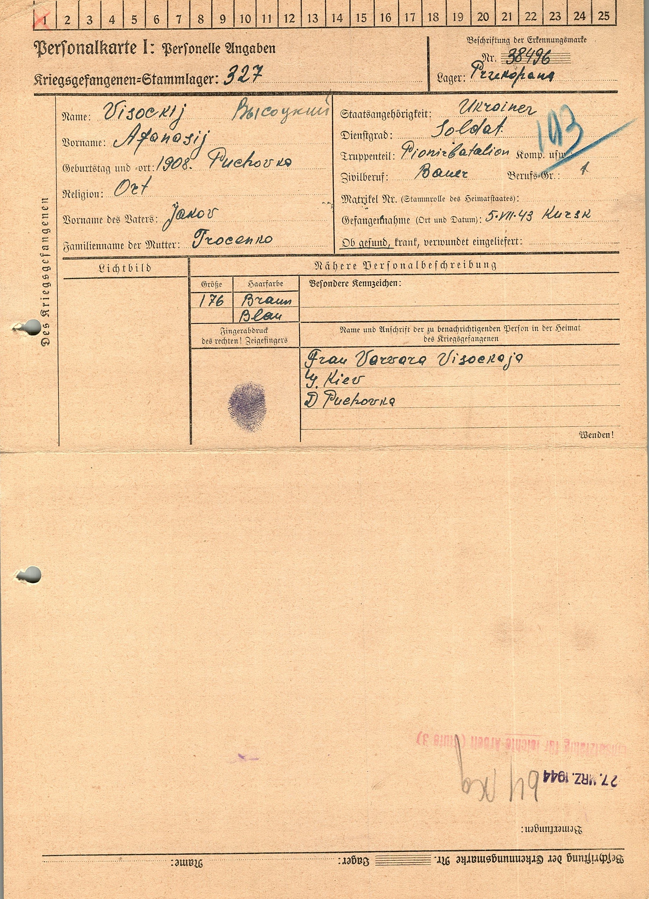 Военнопленные, трофейные карточки. Киевская обл.