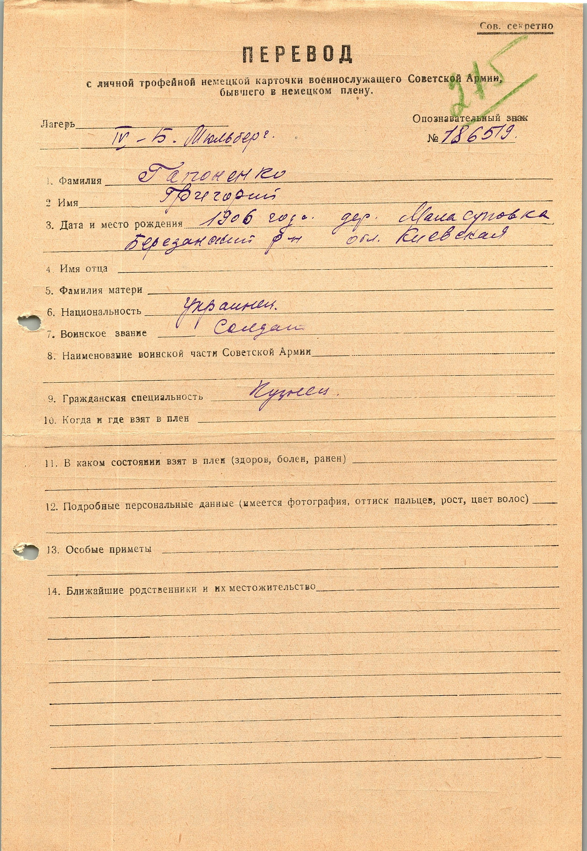 Военнопленные, трофейные карточки. Киевская обл.