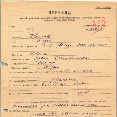 Военнопленные, трофейные карточки. Киевская обл.