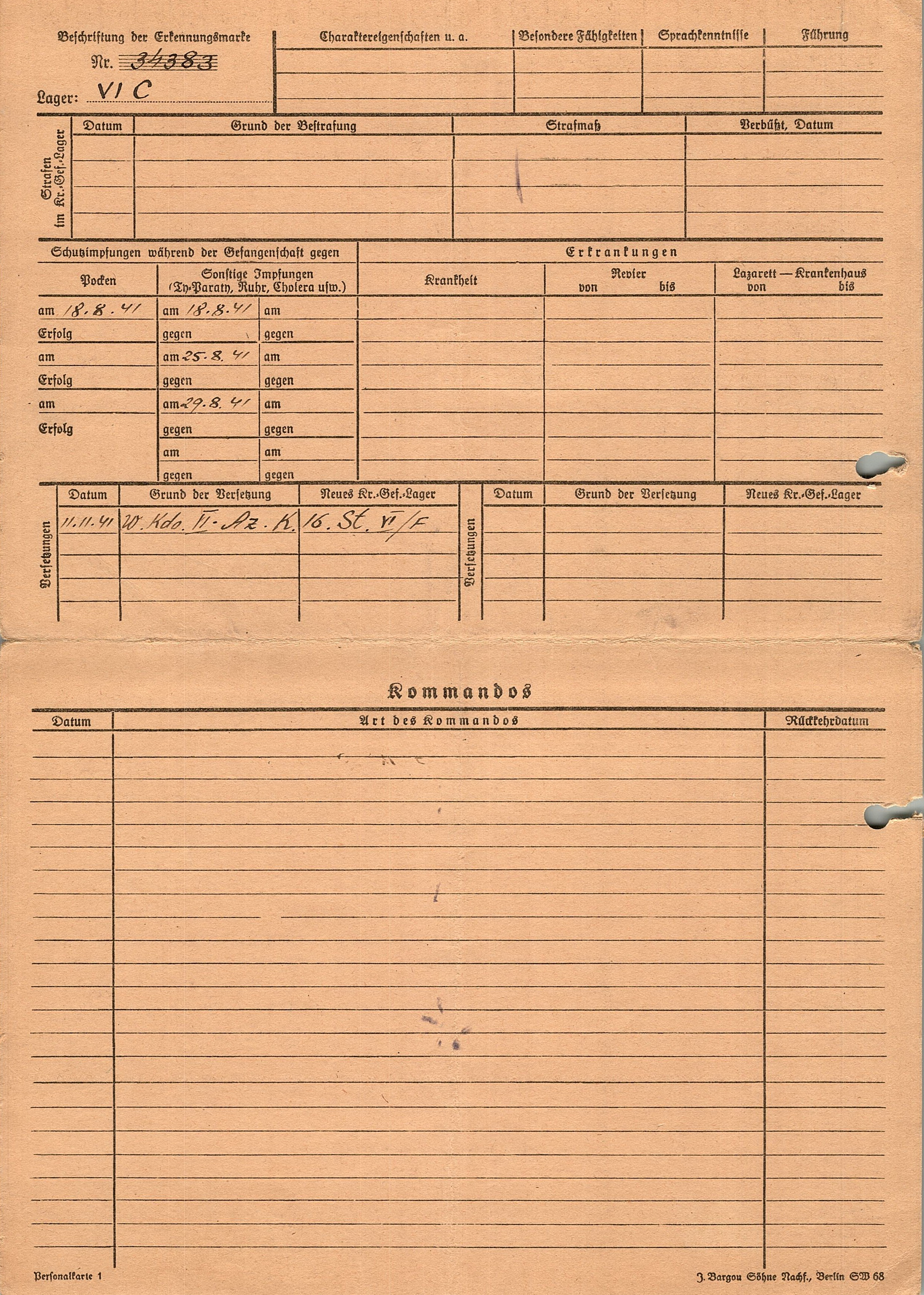 Военнопленные, трофейные карточки. Киевская обл.