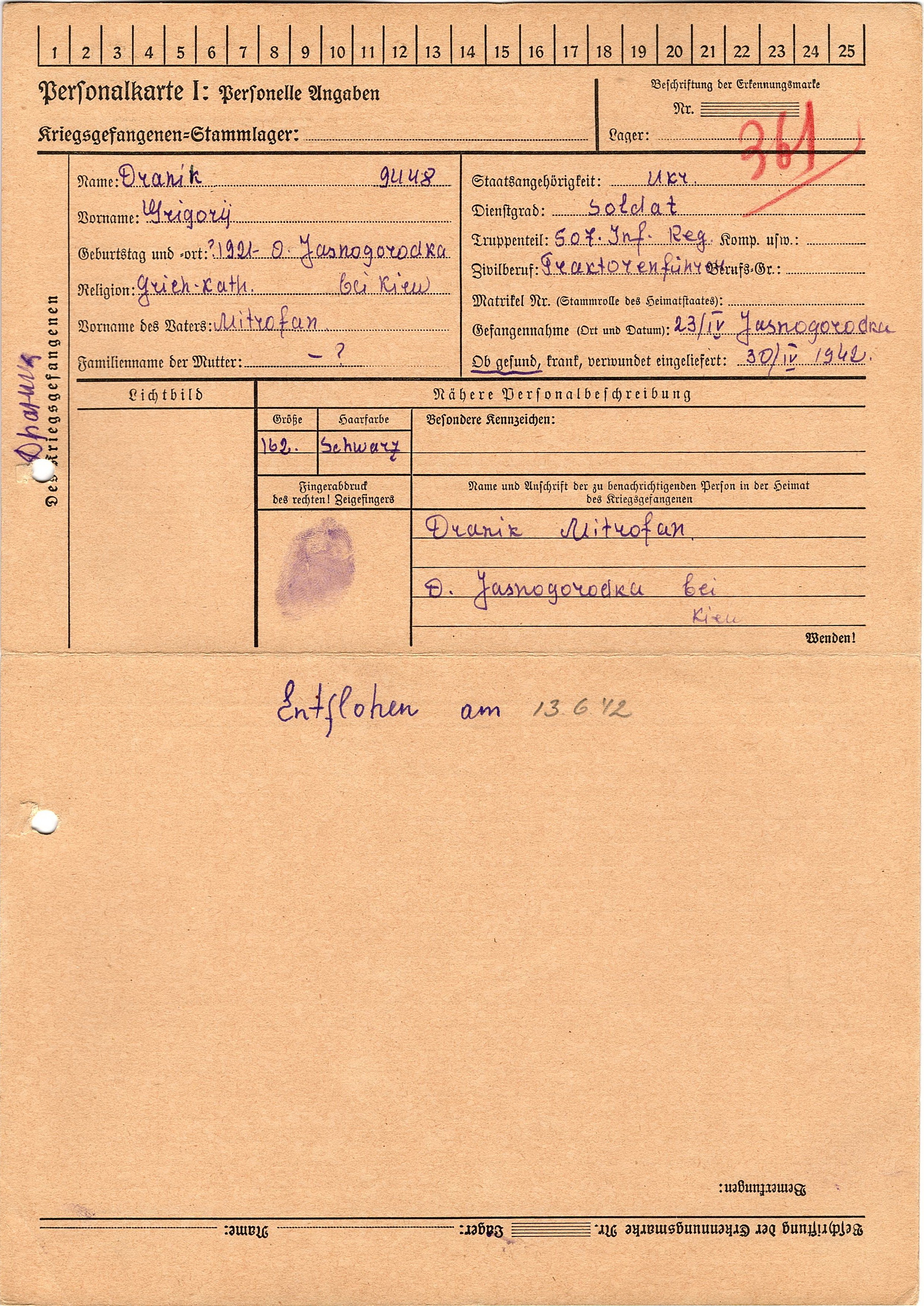 Военнопленные, трофейные карточки. Киевская обл.