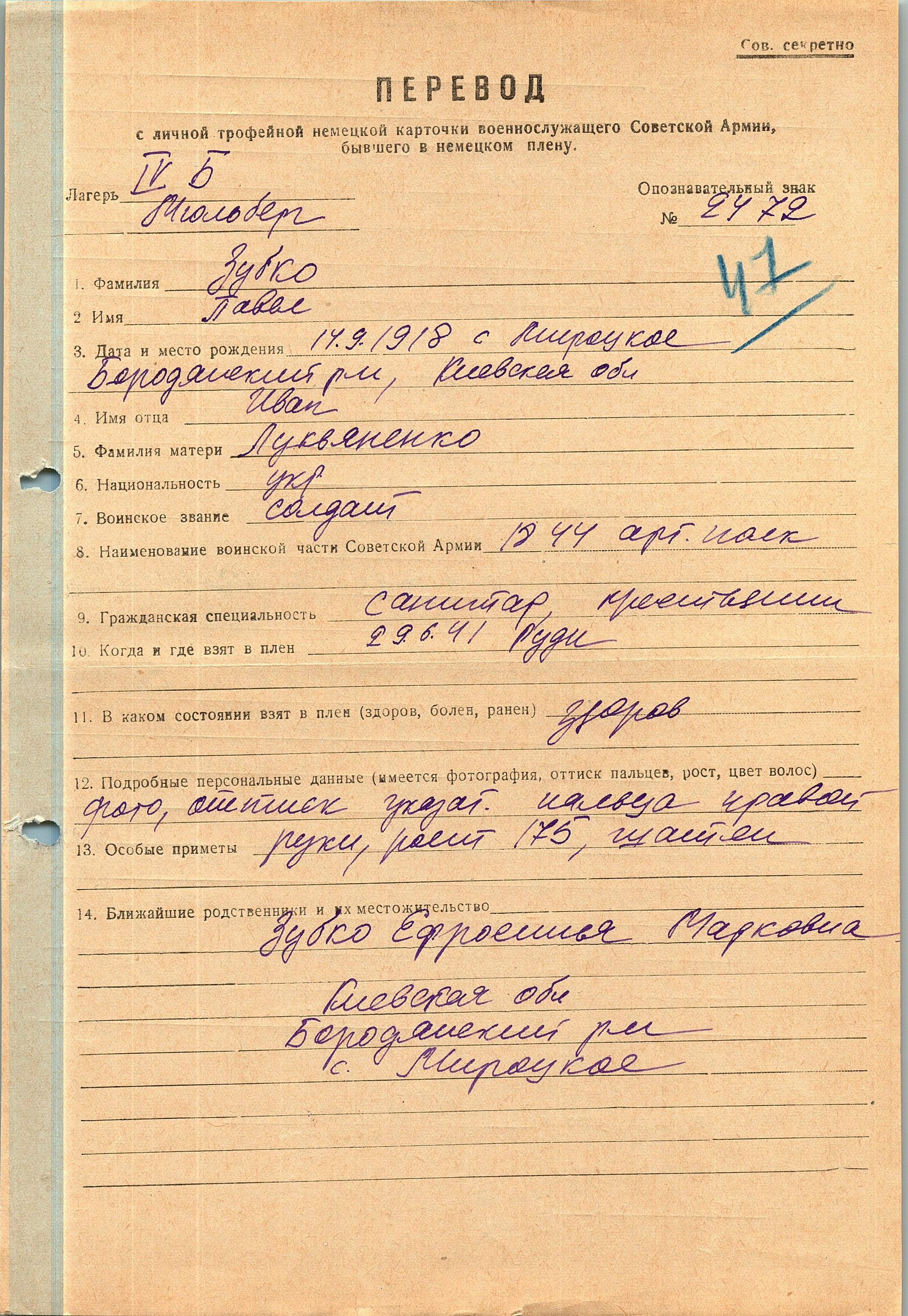Военнопленные, трофейные карточки. Киевская обл.