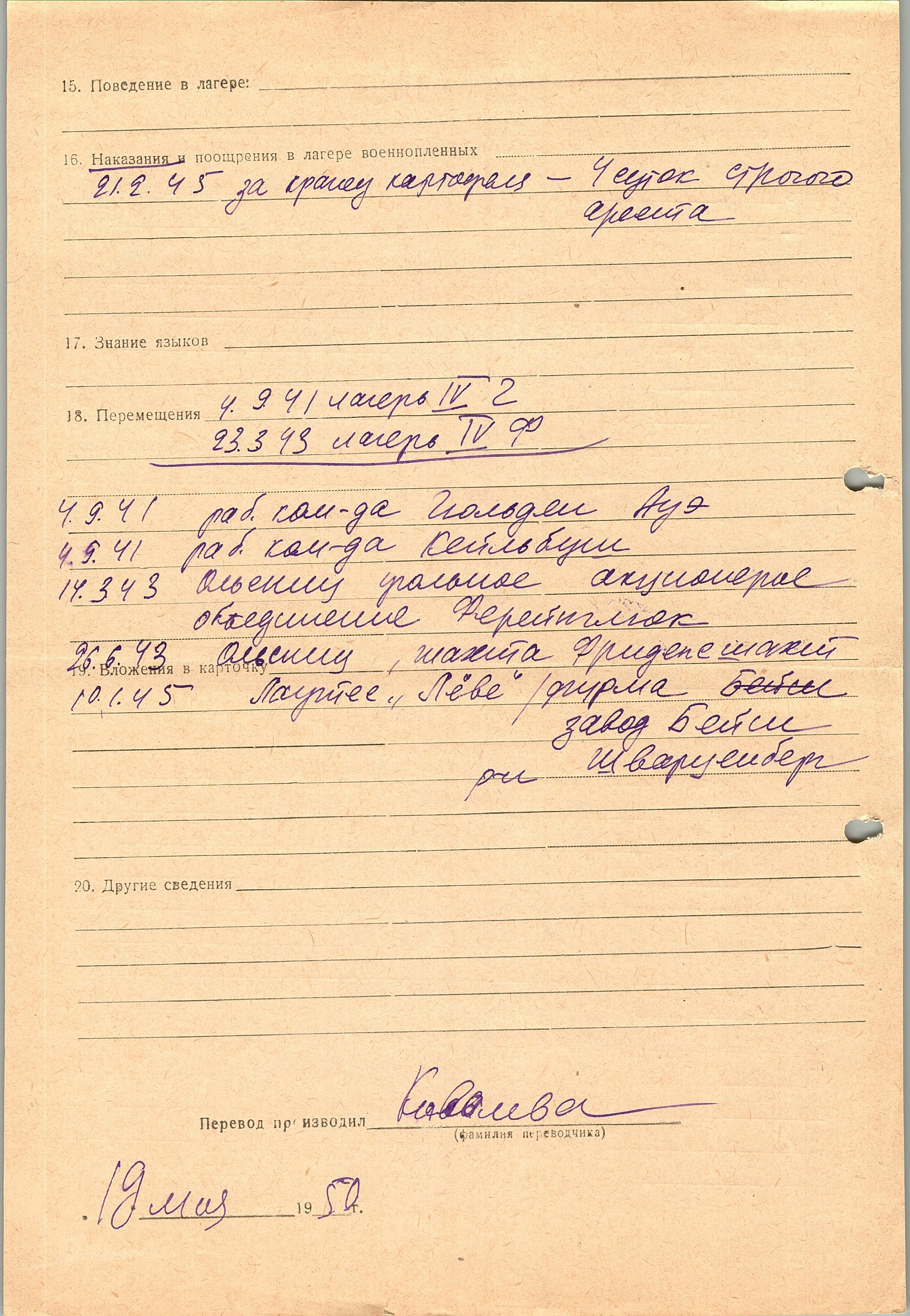 Военнопленные, трофейные карточки. Киевская обл.