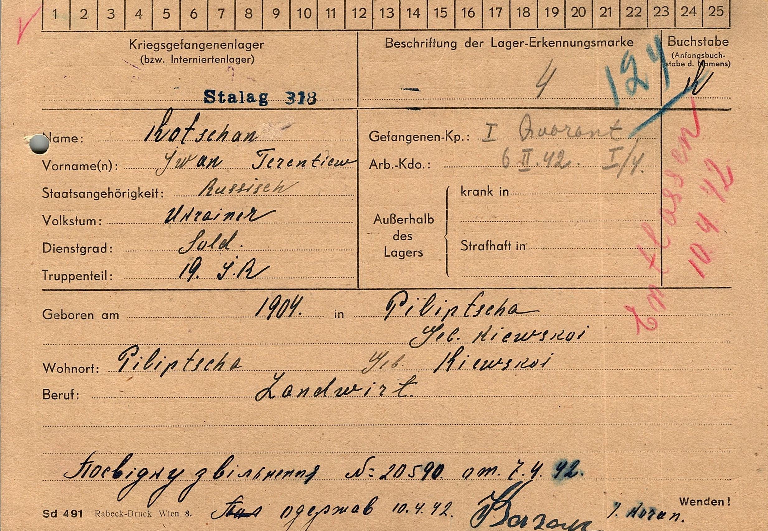 Военнопленные, трофейные карточки. Киевская обл.