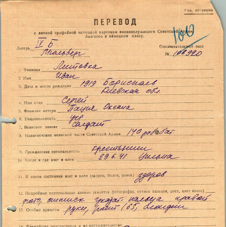 Военнопленные, трофейные карточки. Киевская обл.
