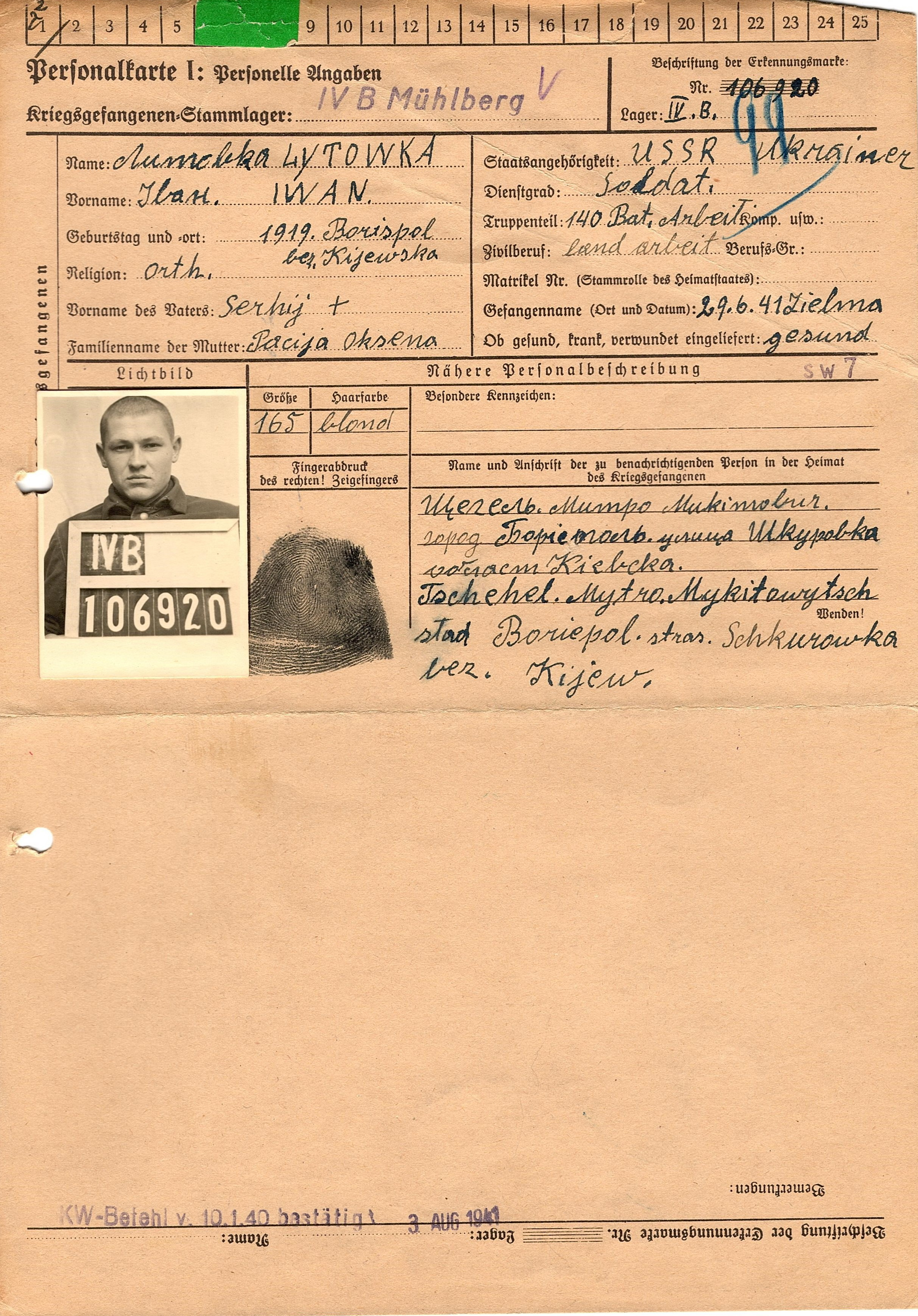 Военнопленные, трофейные карточки. Киевская обл.