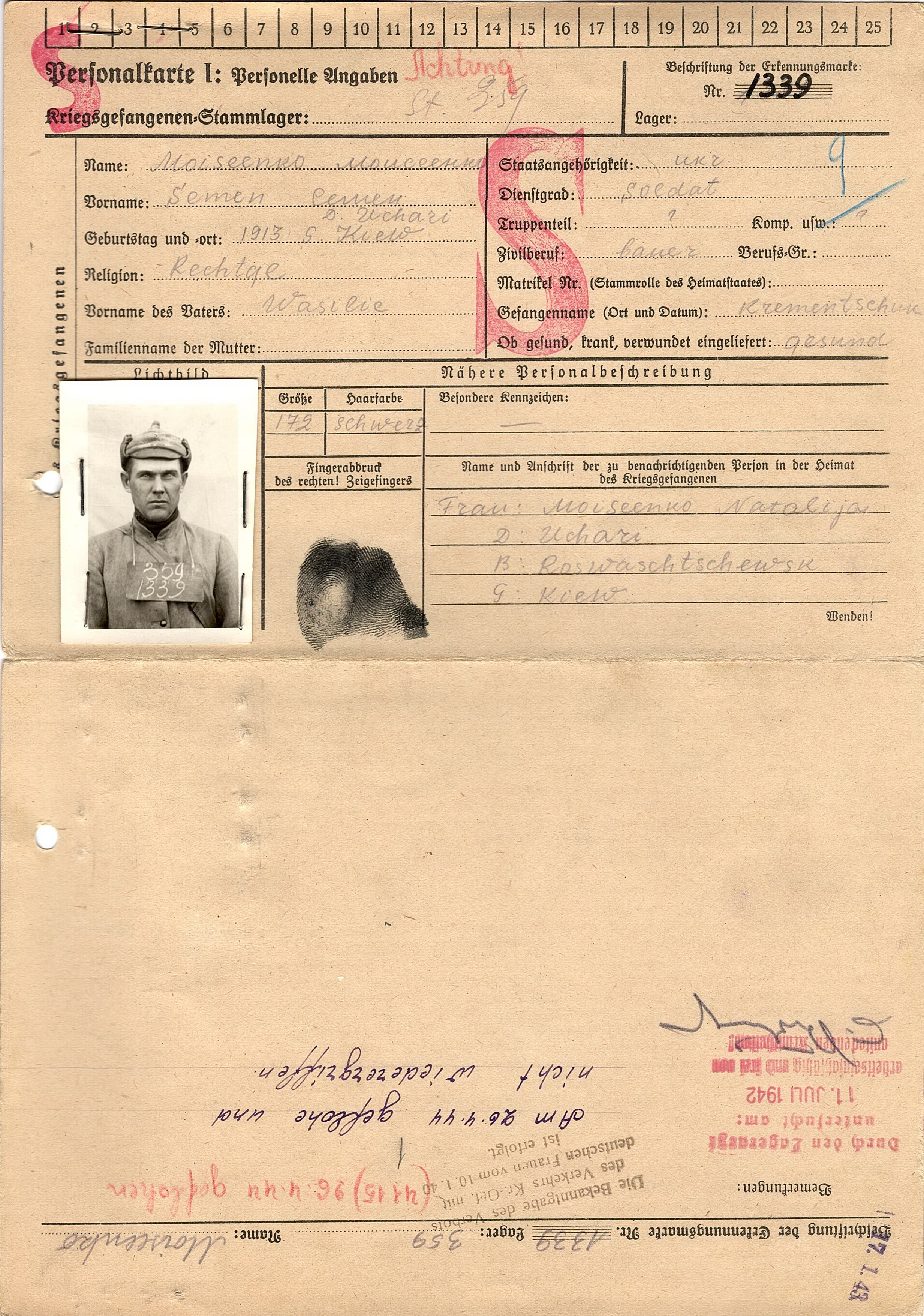 Военнопленные, трофейные карточки. Киевская обл.