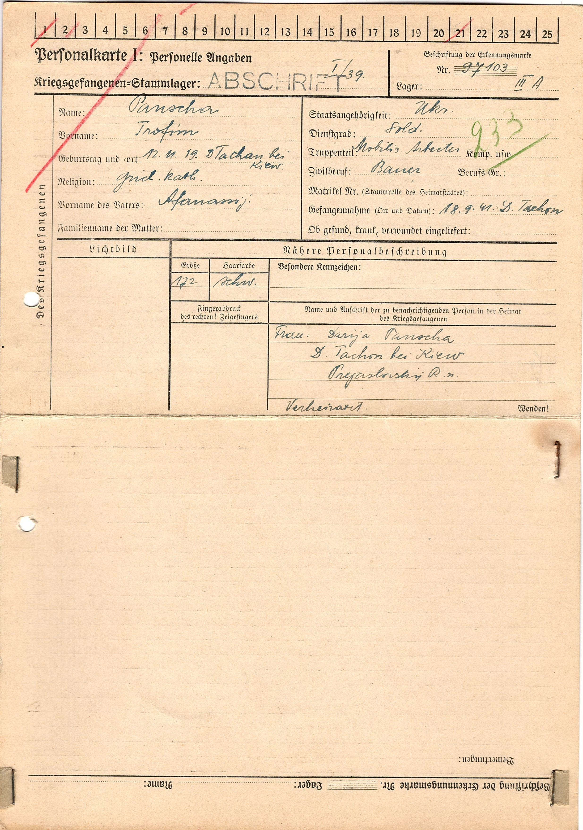 Военнопленные, трофейные карточки. Киевская обл.