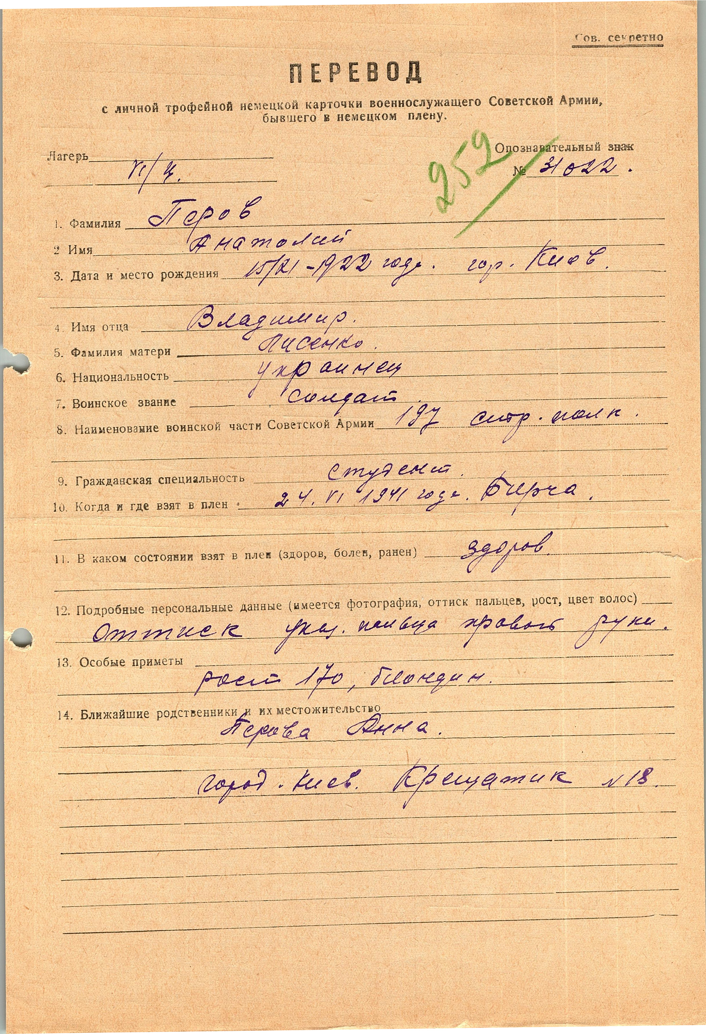 Военнопленные, трофейные карточки. Киевская обл.