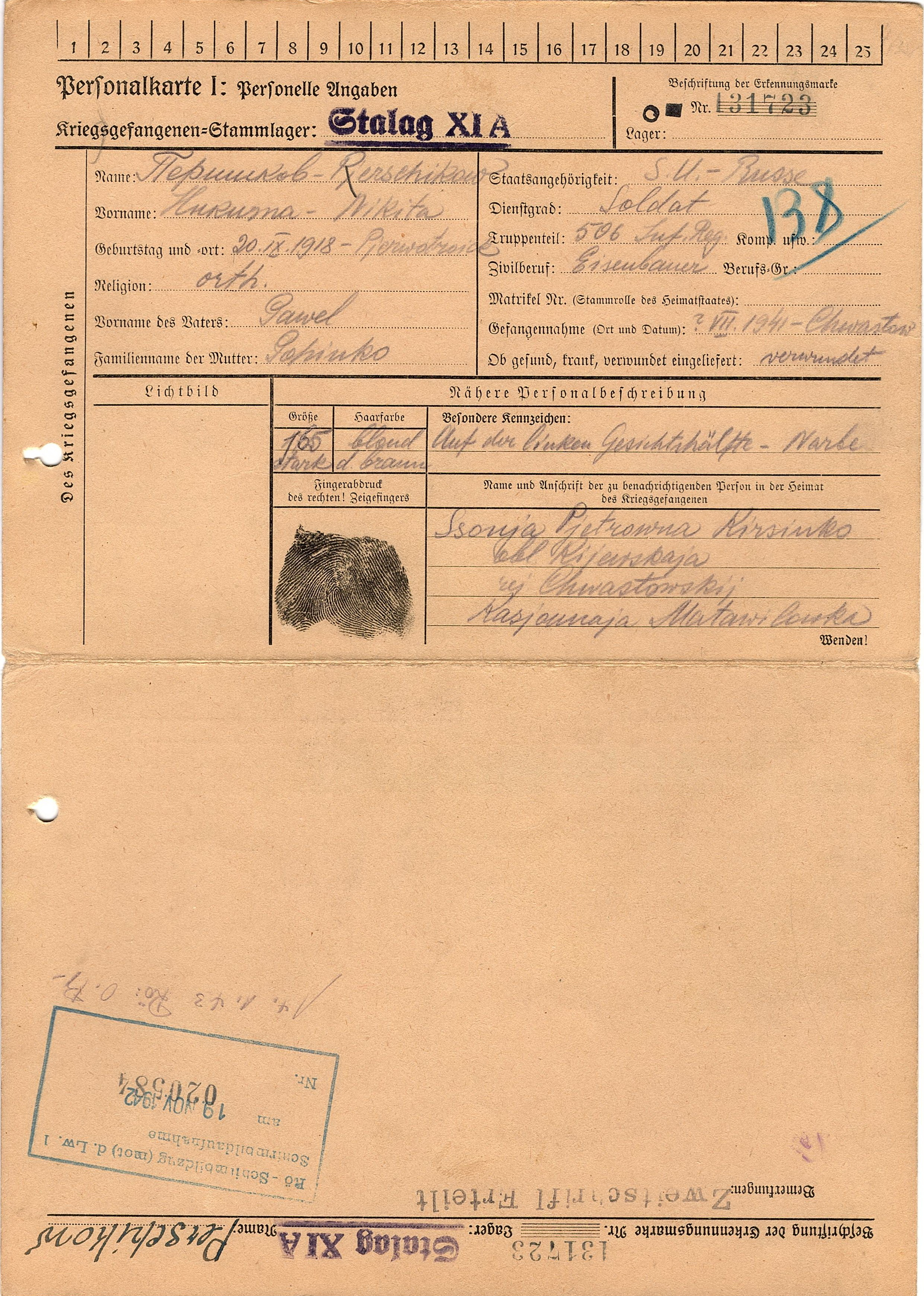 Военнопленные, трофейные карточки. Киевская обл.