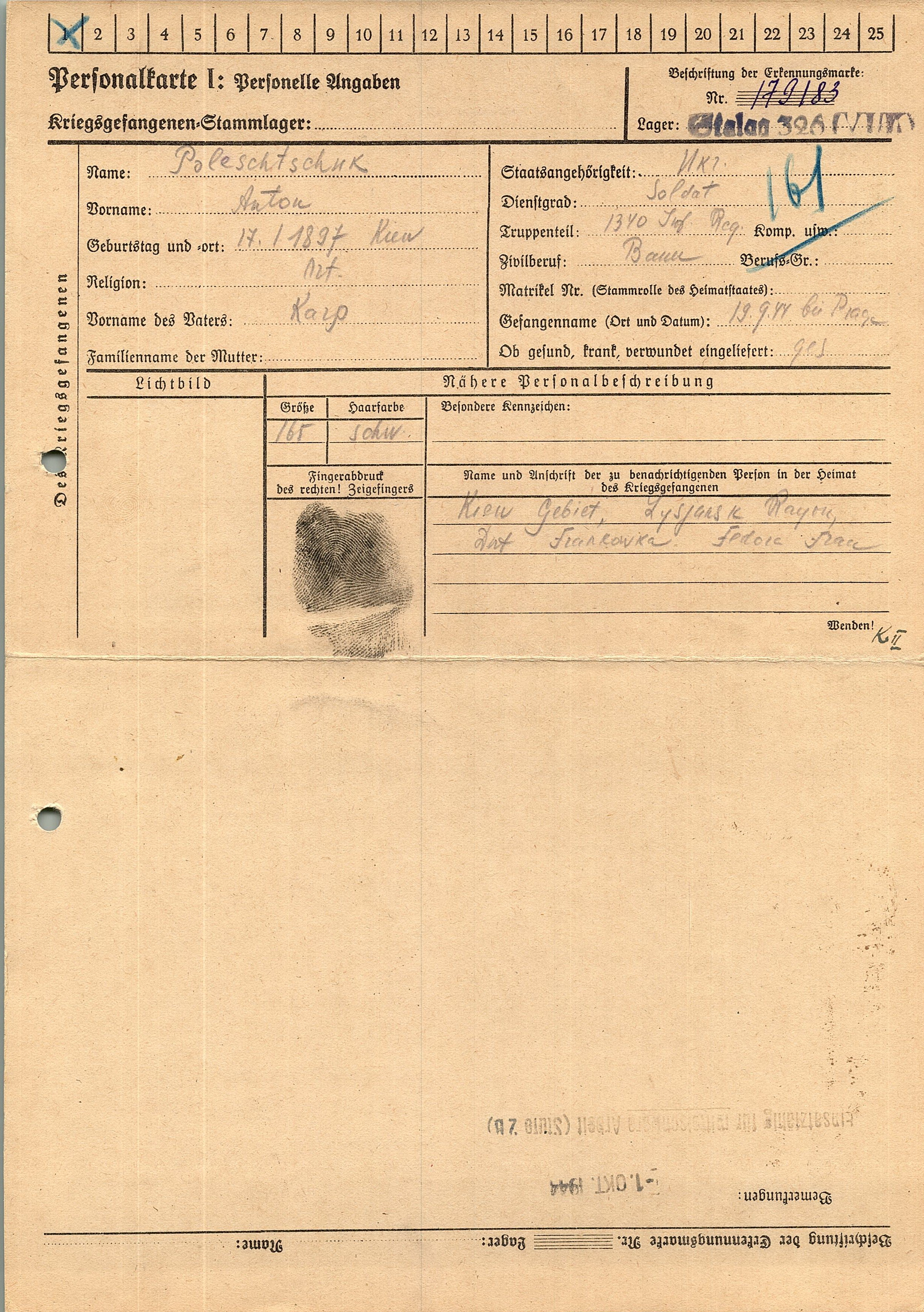 Военнопленные, трофейные карточки. Киевская обл.