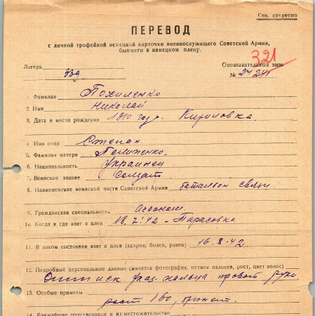 Военнопленные, трофейные карточки. Киевская обл.