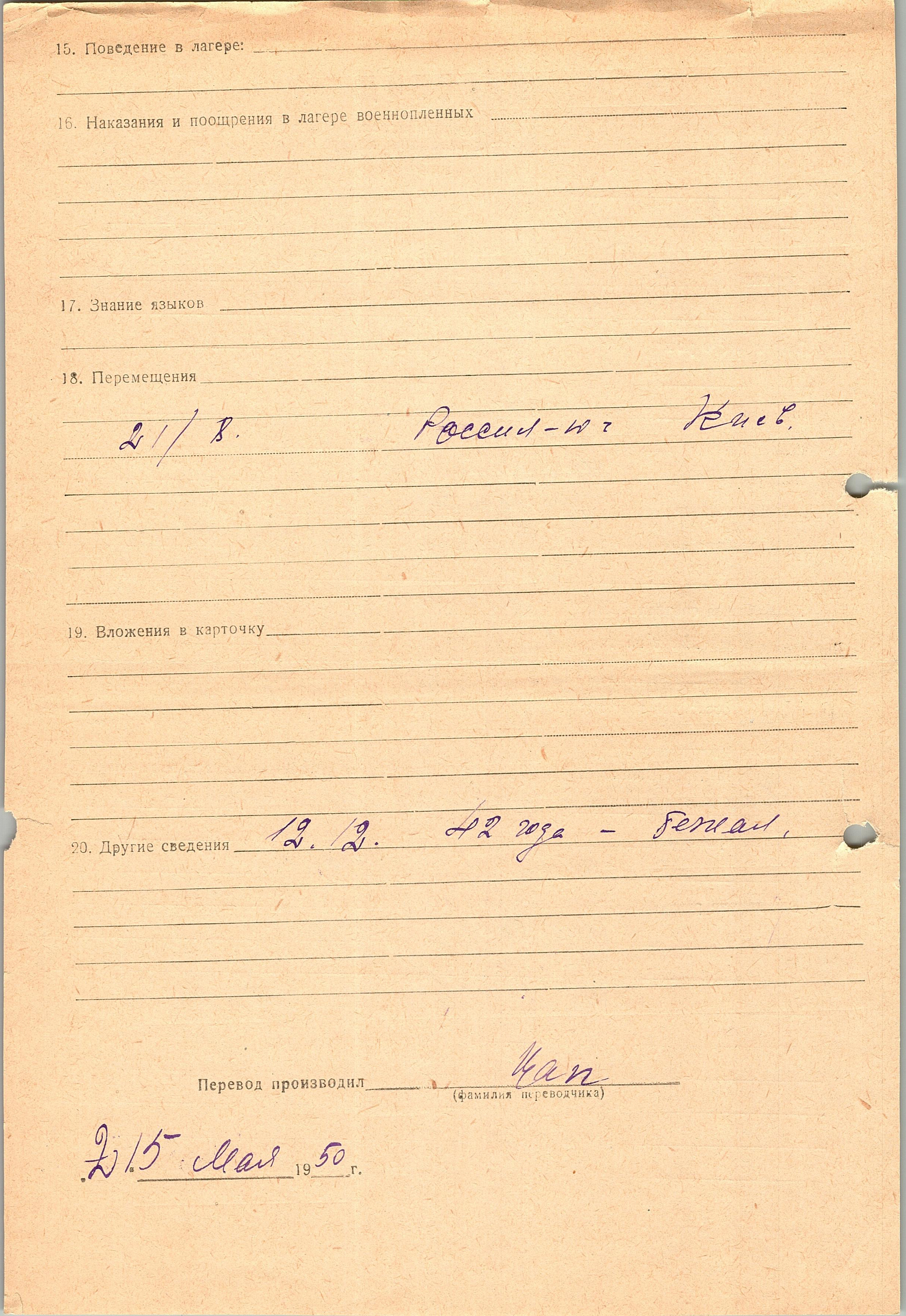 Военнопленные, трофейные карточки. Киевская обл.