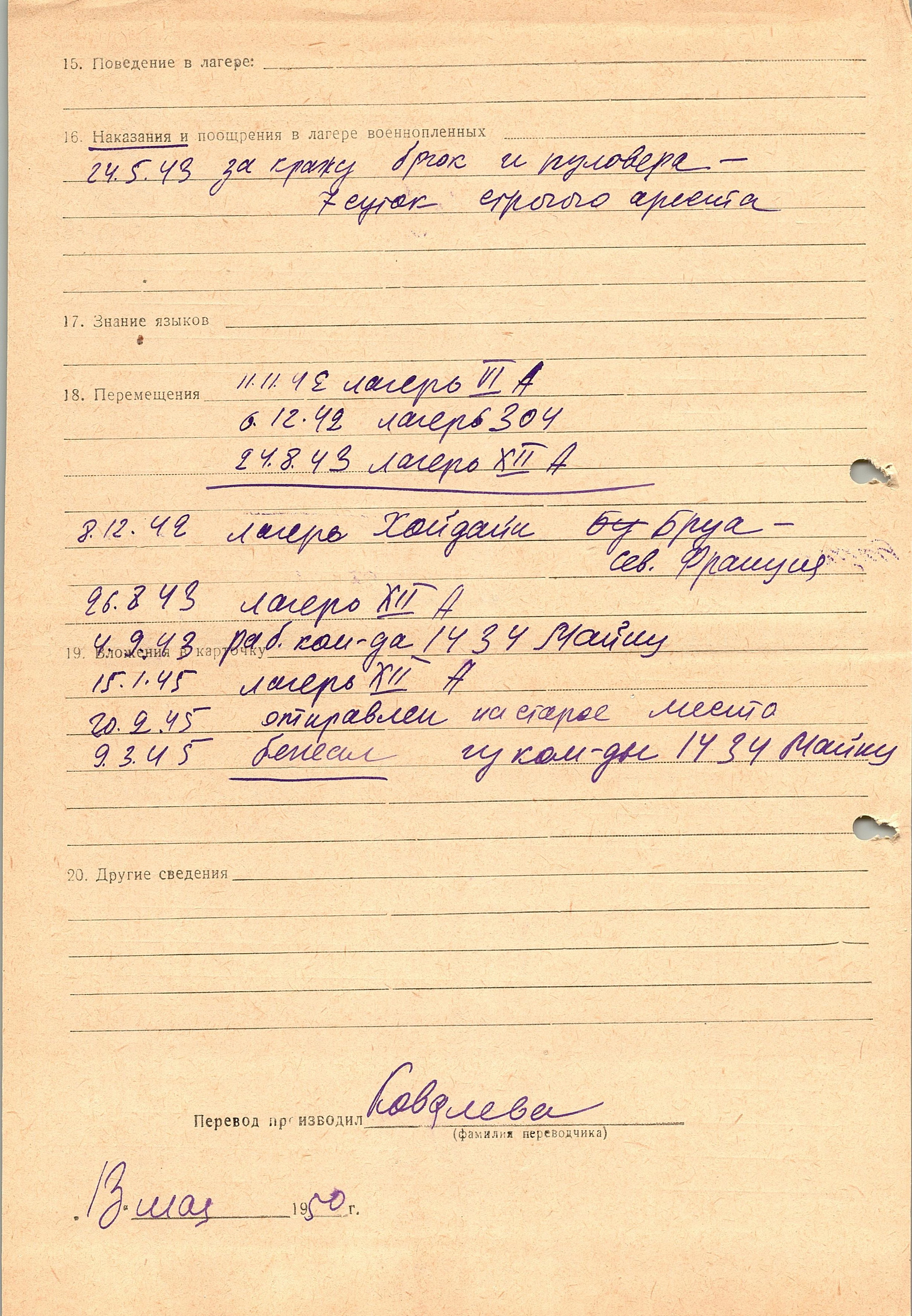 Военнопленные, трофейные карточки. Киевская обл.