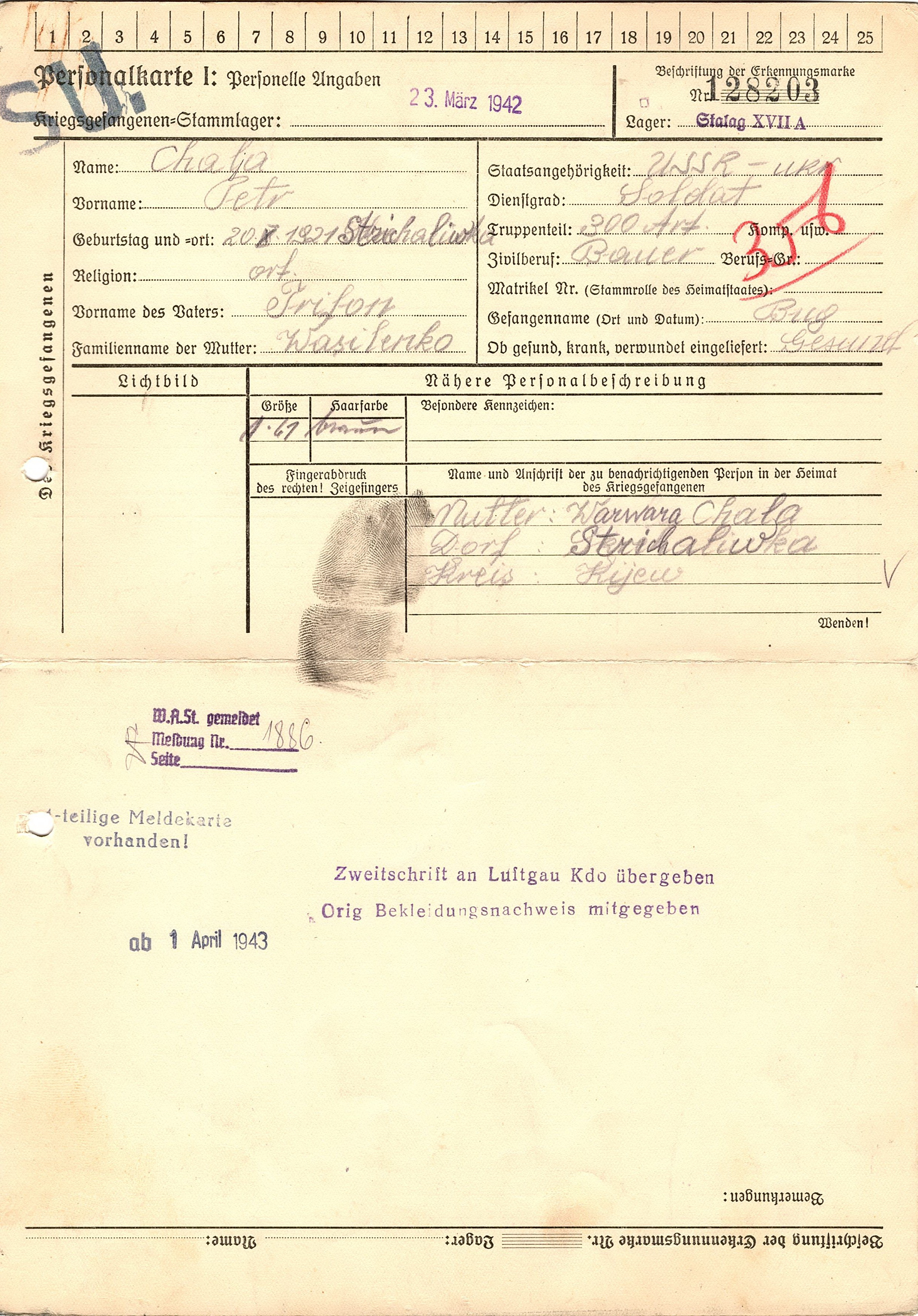 Военнопленные, трофейные карточки. Киевская обл.