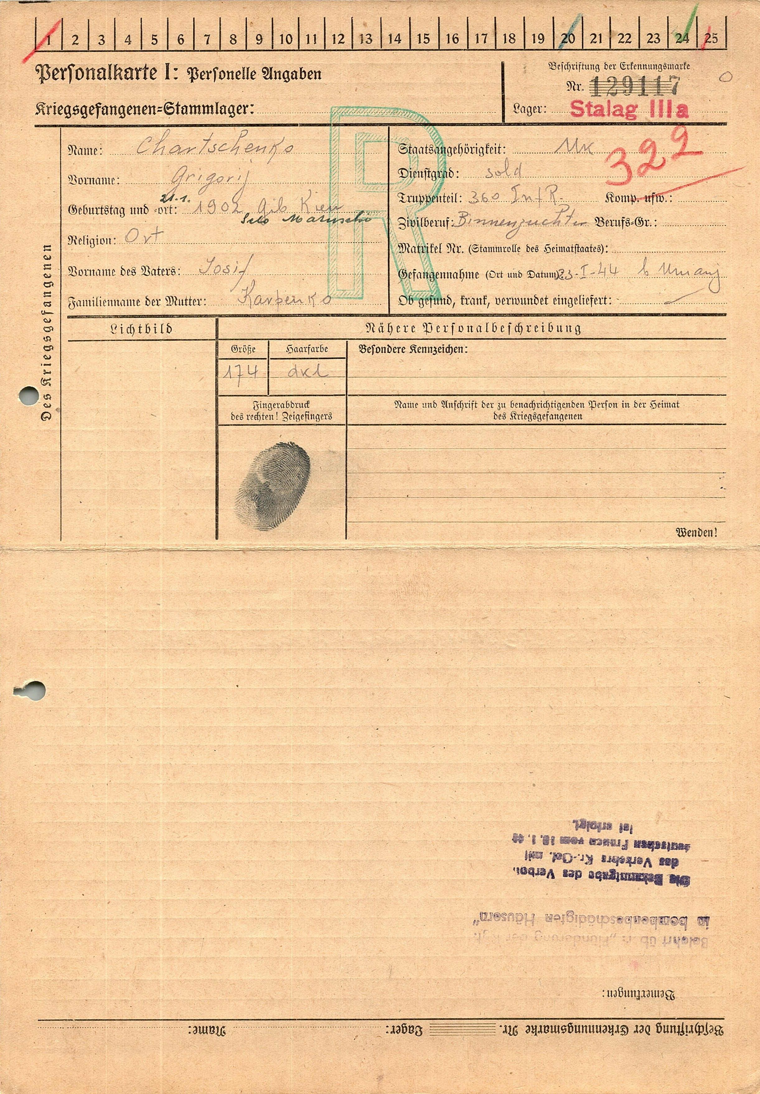 Военнопленные, трофейные карточки. Киевская обл.