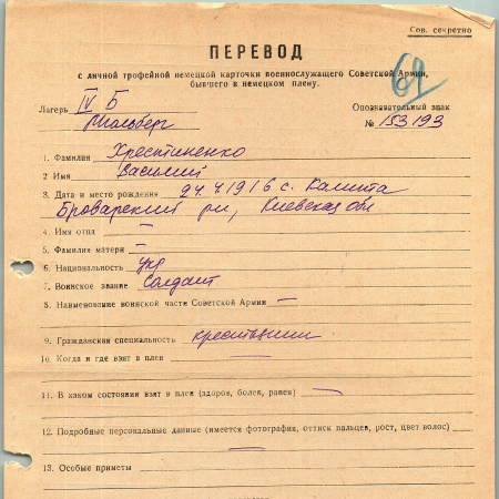 Военнопленные, трофейные карточки. Киевская обл.