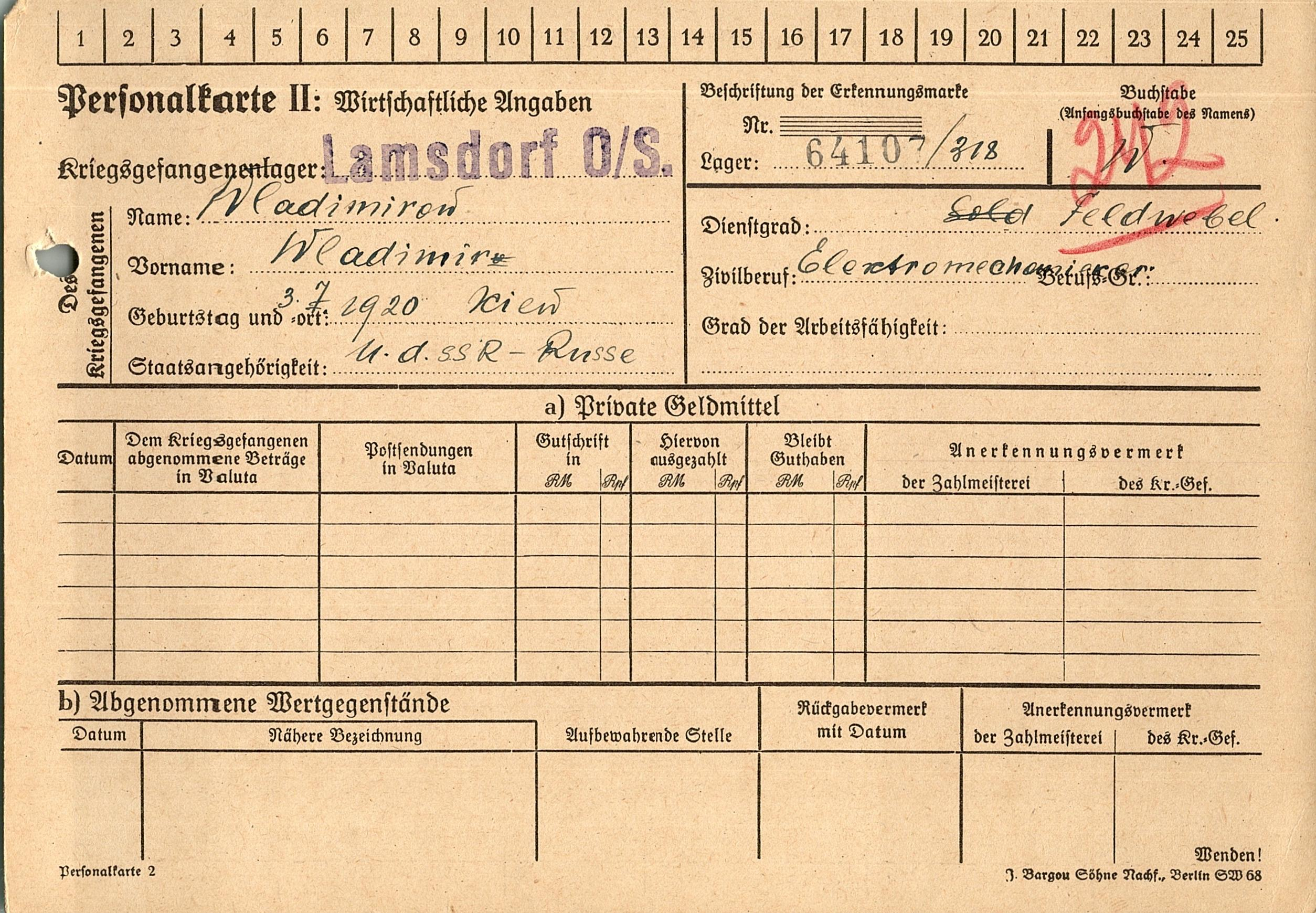 Военнопленные, трофейные карточки. Киевская обл.