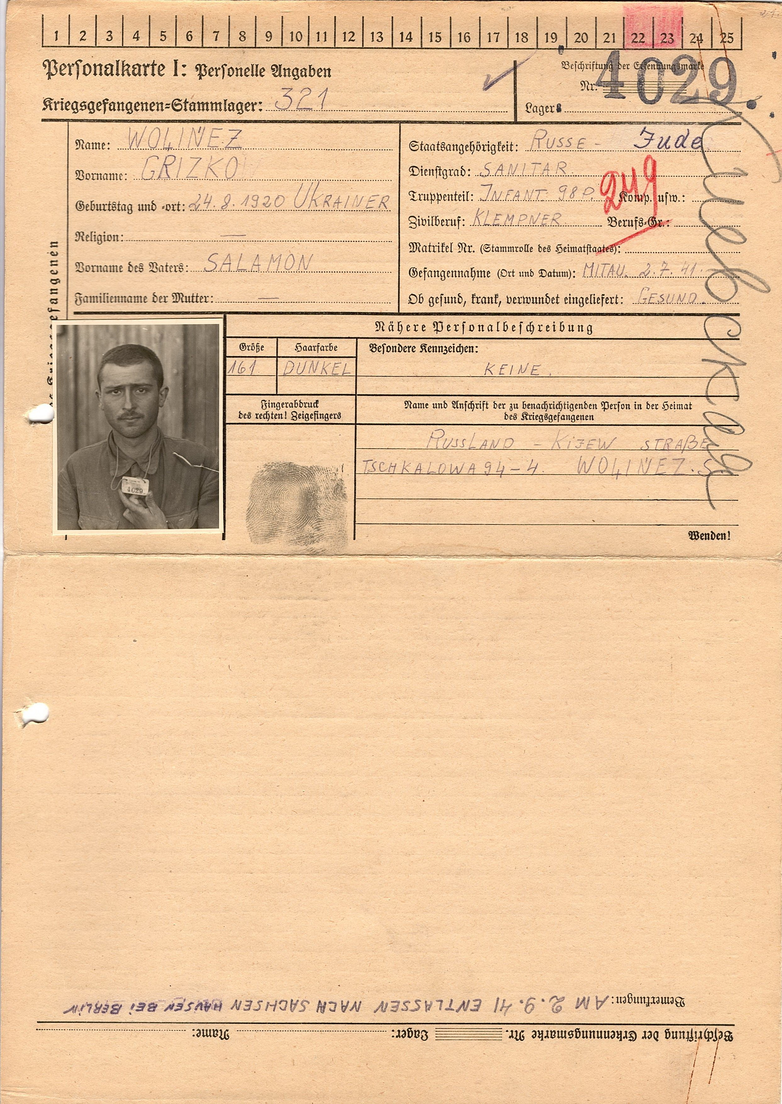 Военнопленные, трофейные карточки. Киевская обл.