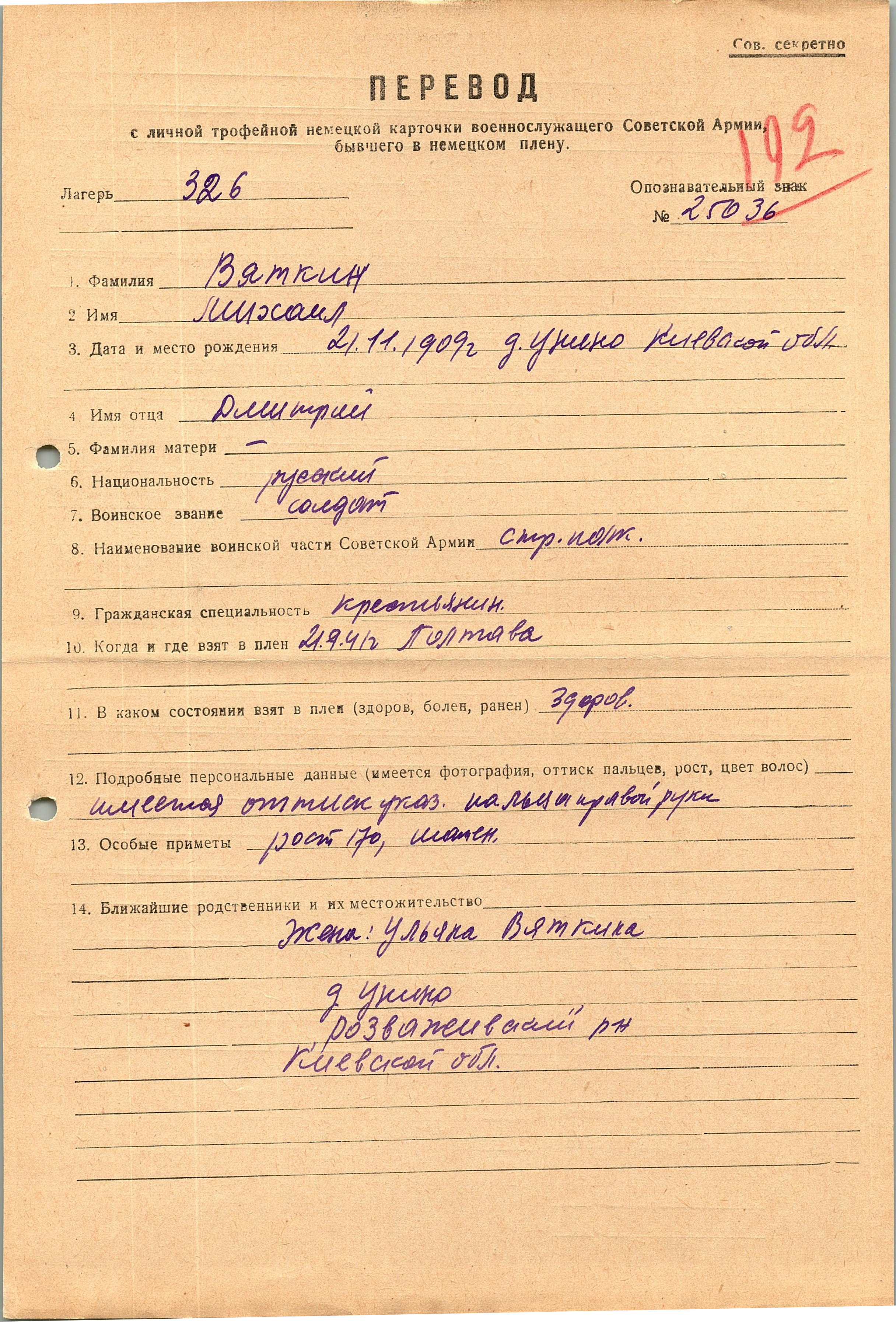 Военнопленные, трофейные карточки. Киевская обл.