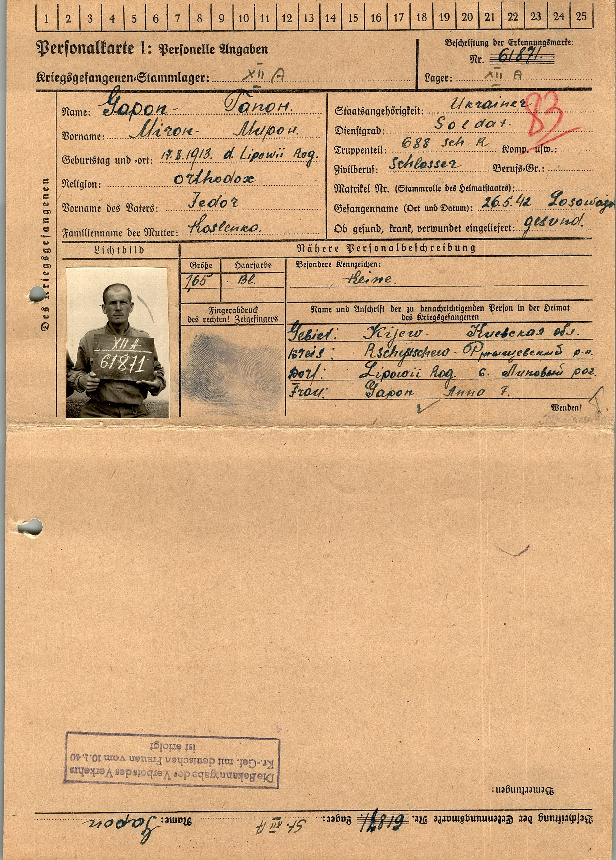 Военнопленные, трофейные карточки. Киевская обл.