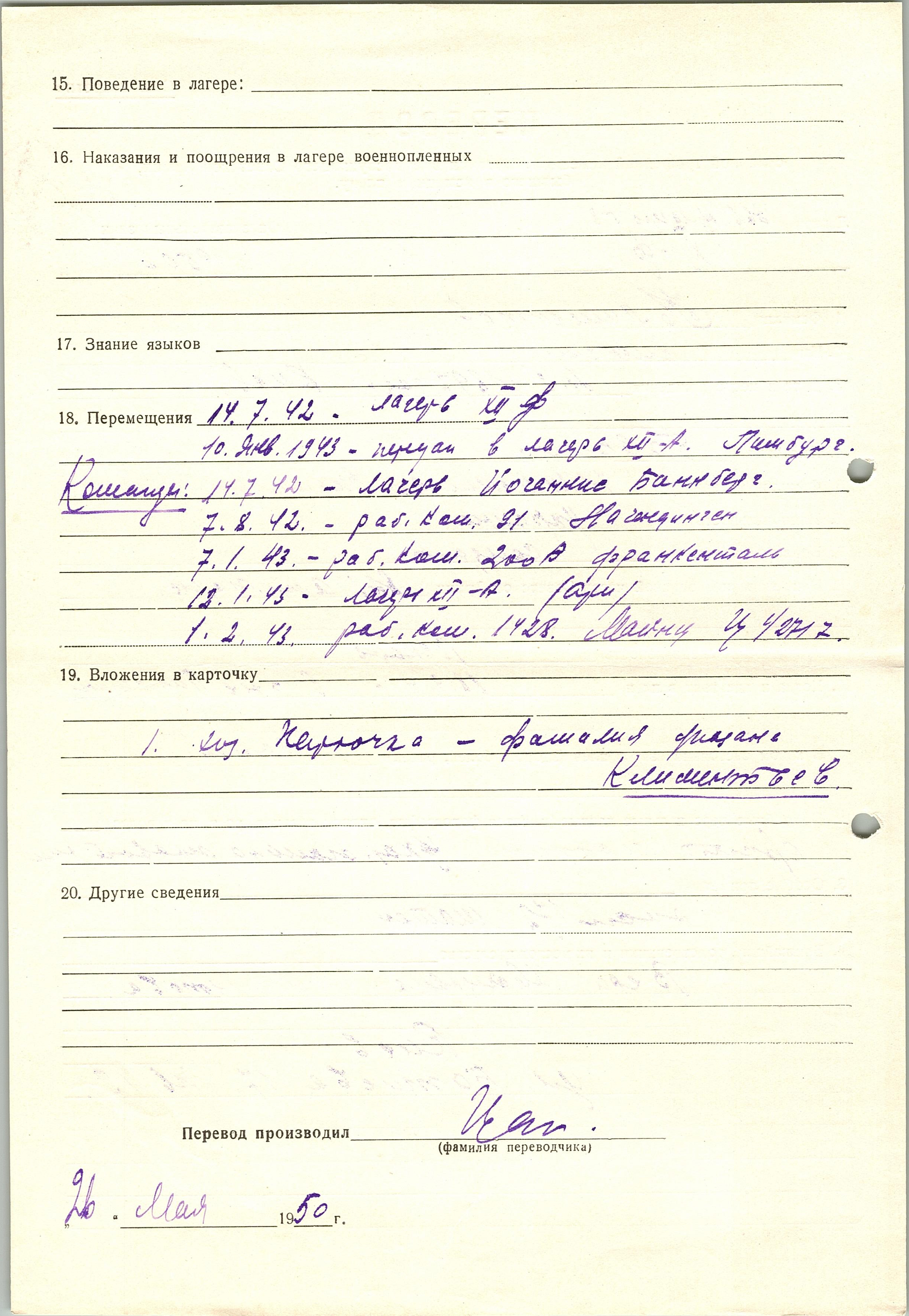 Военнопленные, трофейные карточки. Киевская обл.