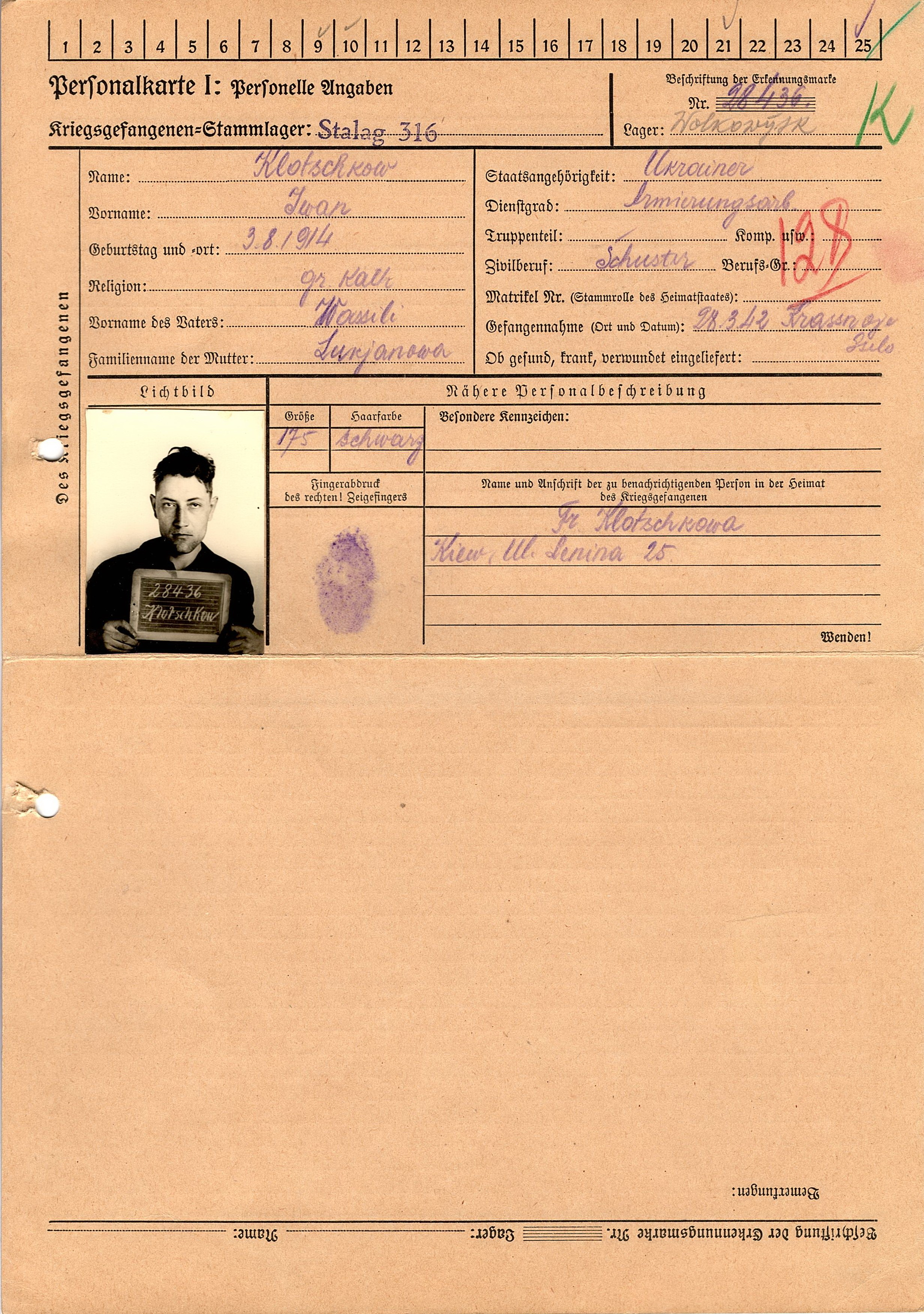 Военнопленные, трофейные карточки. Киевская обл.