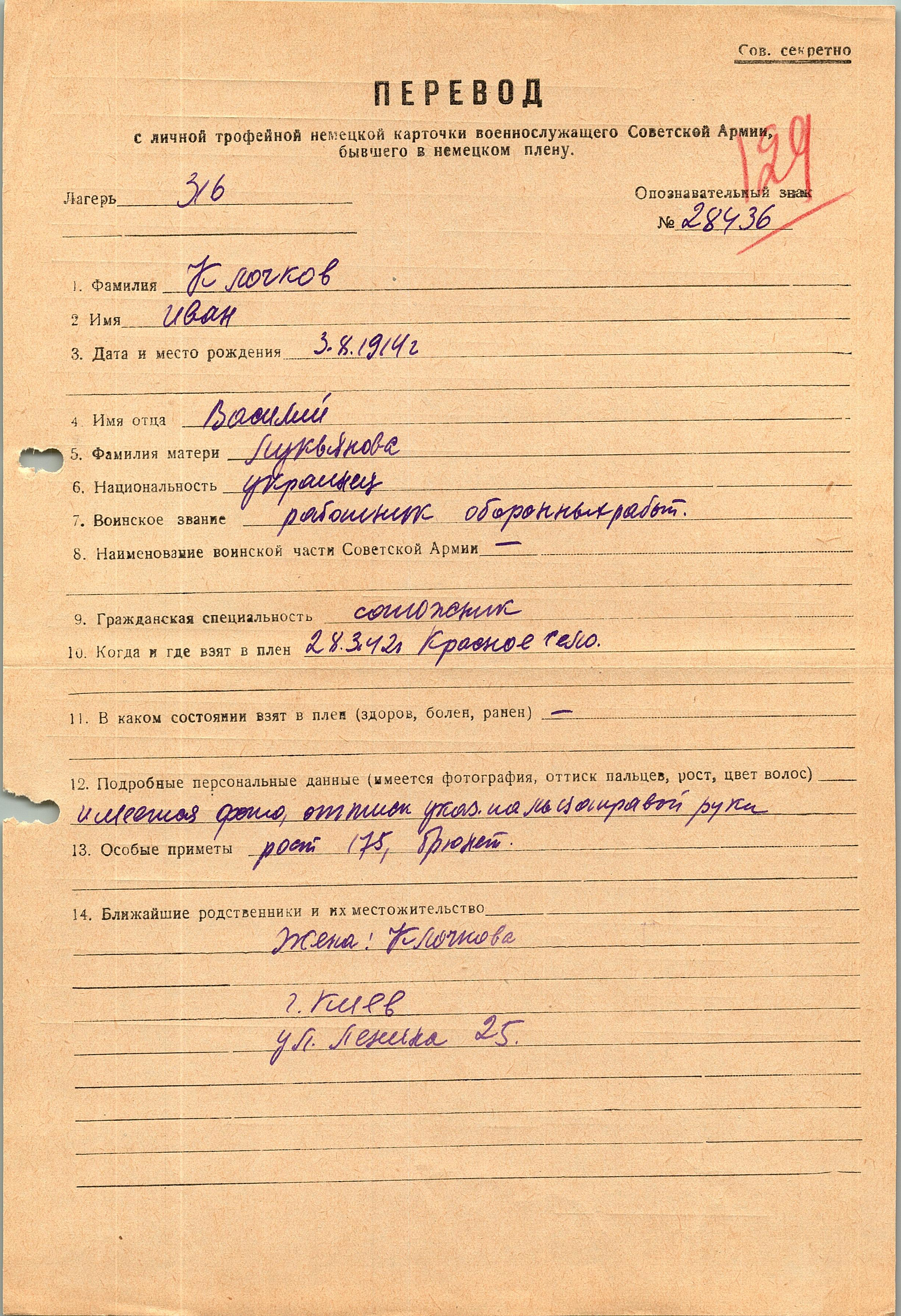 Военнопленные, трофейные карточки. Киевская обл.