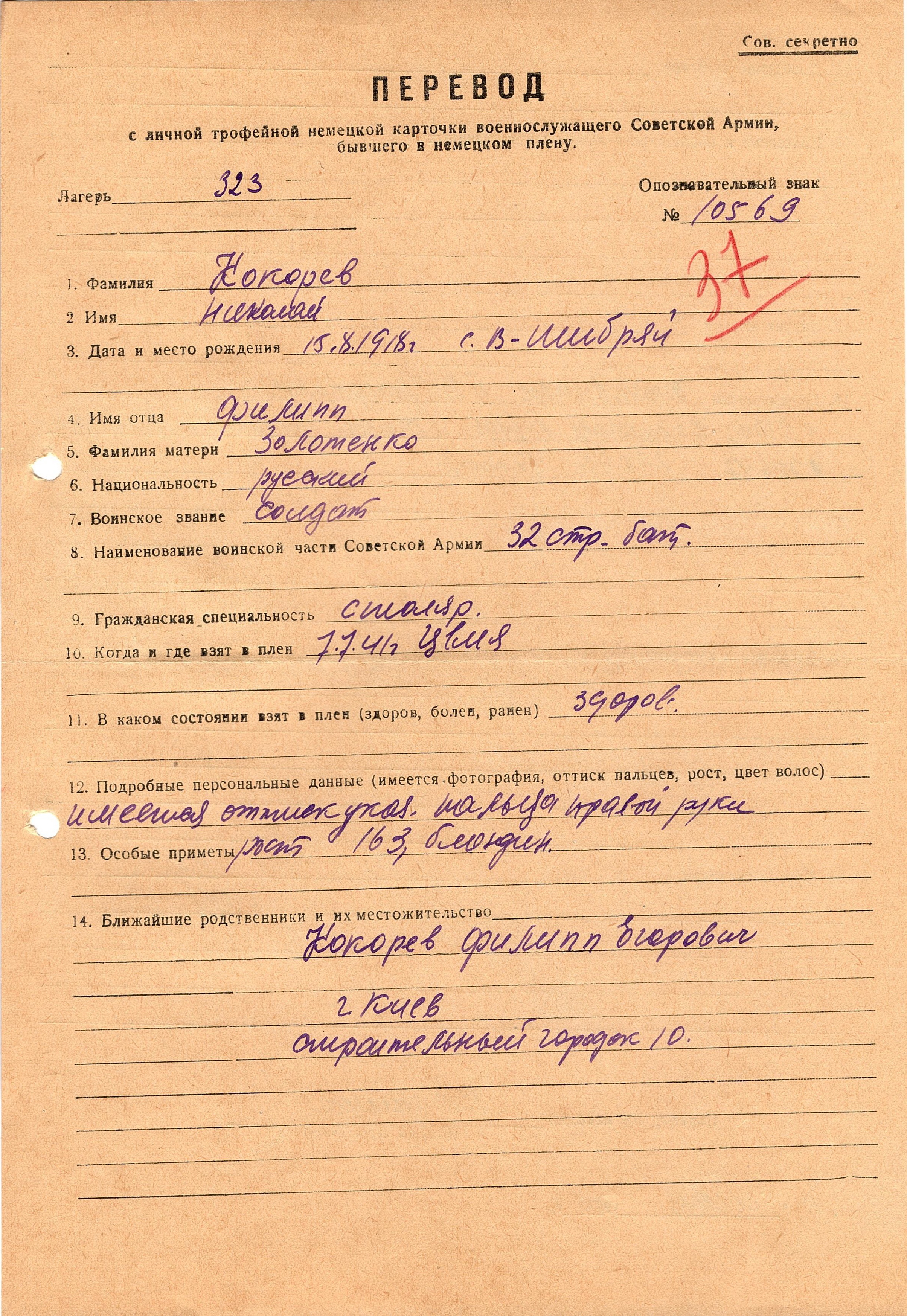 Военнопленные, трофейные карточки. Киевская обл.