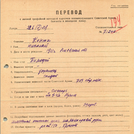 Военнопленные, трофейные карточки. Киевская обл.