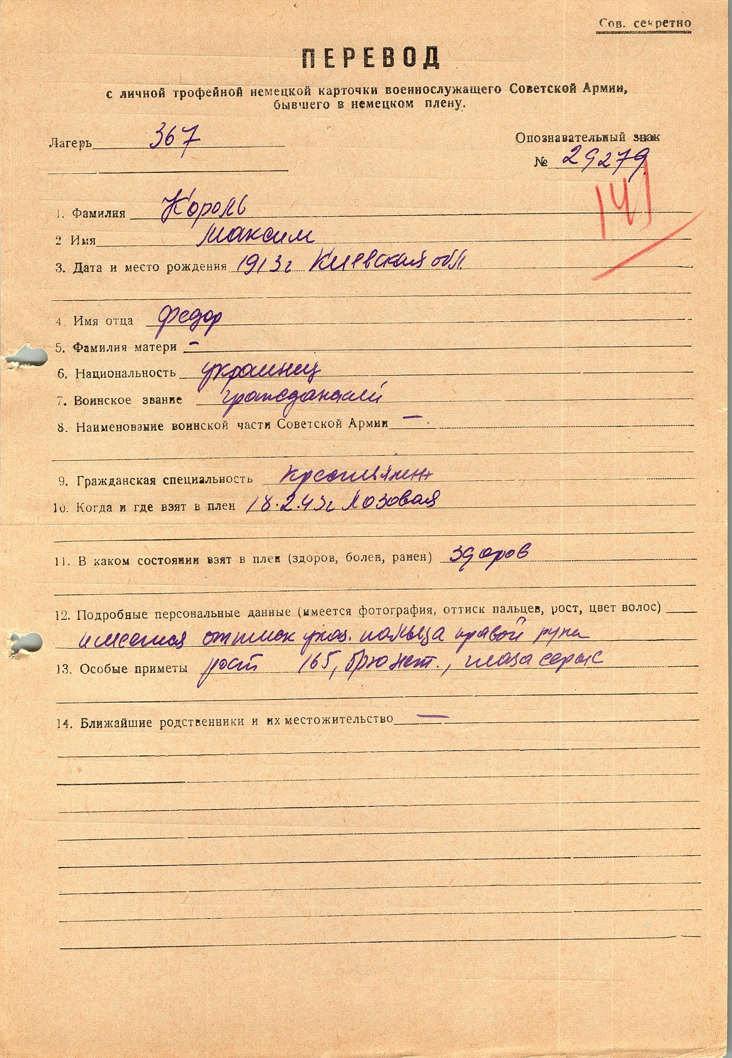 Военнопленные, трофейные карточки. Киевская обл.